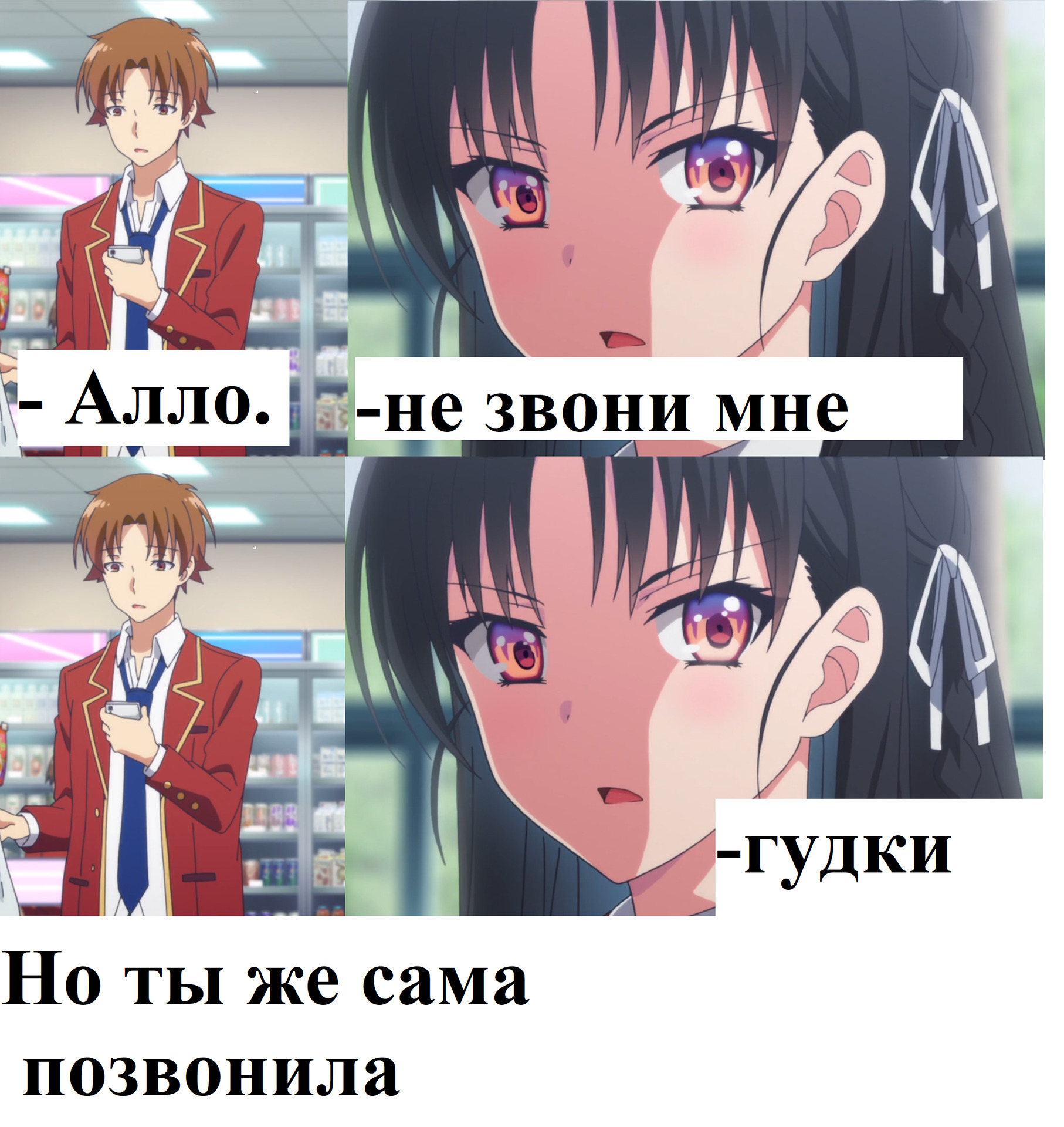 -Слушай, Ганнибал в юбке и сиьсками, ты же понимаешь, что исключат меня, аниме не будет и вас всех исключат так же, потому что вы тупые бревна и без меня вы просто статисты, я здесь герой, а вы задний план, мусор, фан сервис сиськами, я могу делать что хочу!