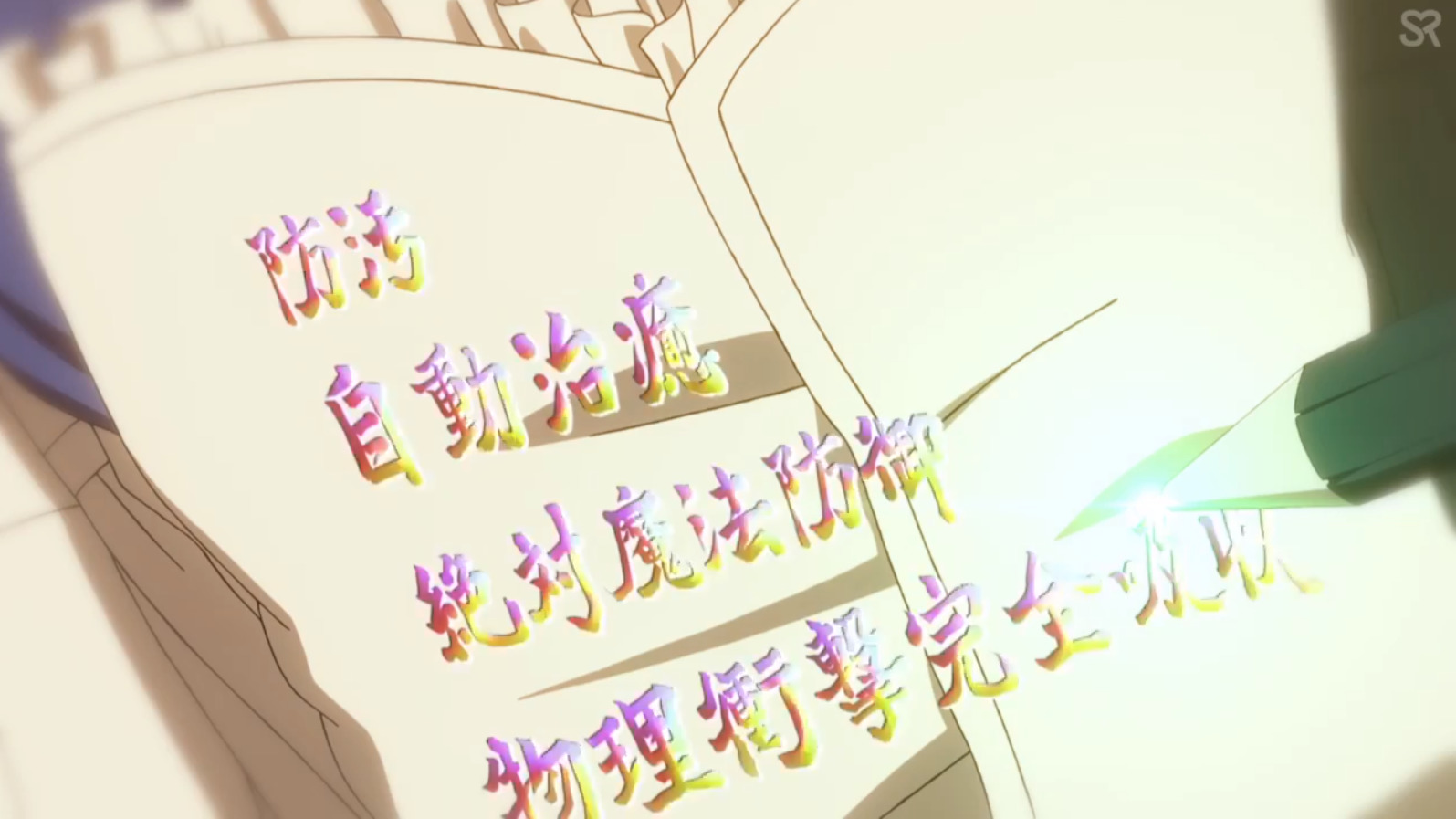 Помимо этого, хотя в аниме на этом акцент не сделали что является недостатком, но он зачаровывает вещи на не знакомом для людей другого мира - японском.