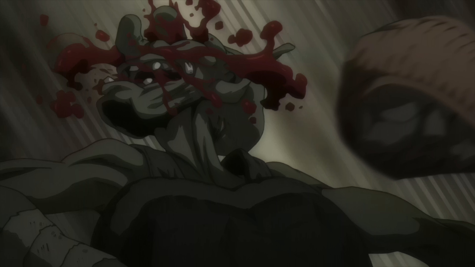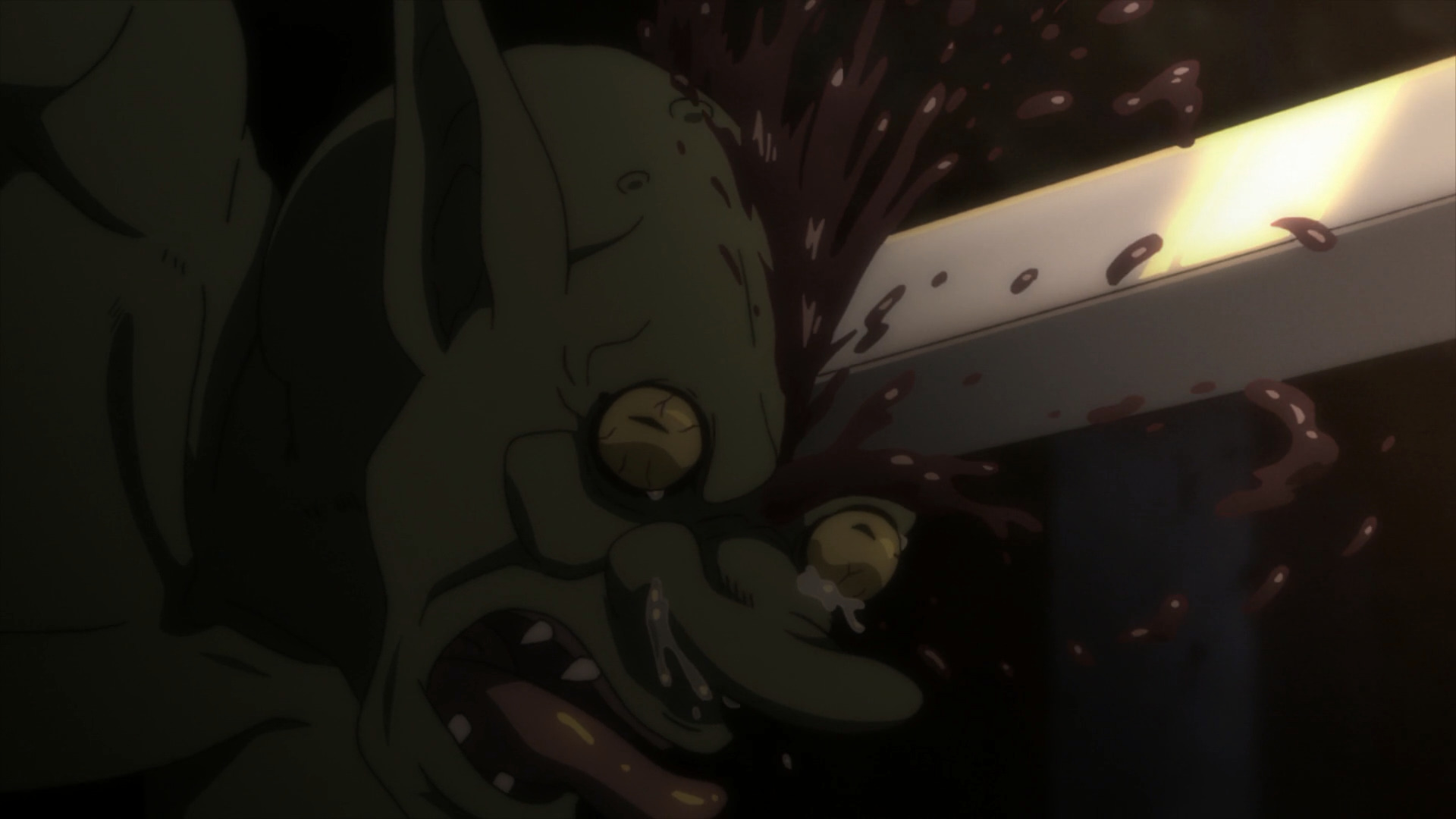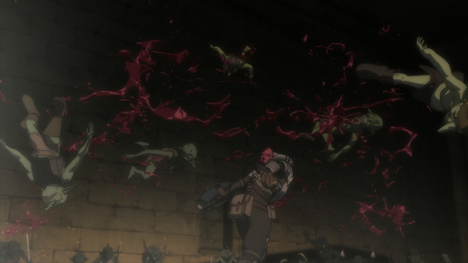Наконец, когда речь заходит о насилии в искусстве, можно вспомнить фильмы Тарантино или, если брать аниме, «Hellsing Ultimate», где каждый подобный эпизод выглядит полноценным перфомансом. Если же до кучи взглянуть на боевики Джеки Чана, становится ясно, что грамотно поставленные сцены могут вытянуть до определенного уровня любой фильм, каким бы, пардон, говном по содержанию он ни был. Так вот, вместо поставленных сцен в «Goblin Slayer» есть только литры крови: как трехмерной, так и не очень.