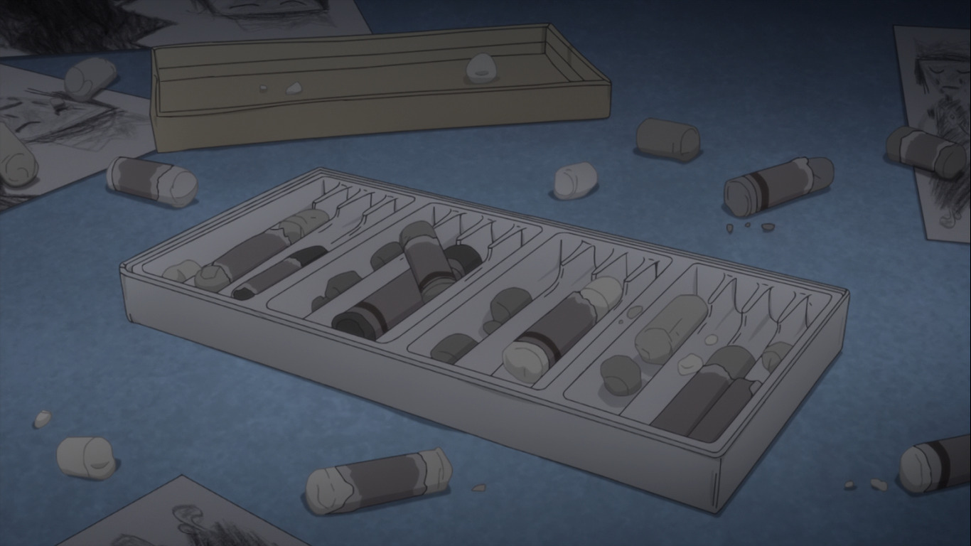 Музыкальное сопровождение: более всего запомнился опенинг. Смена кадров с красками, кисточками, перемена палитры с чёрно-белой на цветную и поддержка всего этого замечательной песней - прям вообще хорошо получилось. Кому интересно - это песня Haruka to Miyuki - 17-sai.