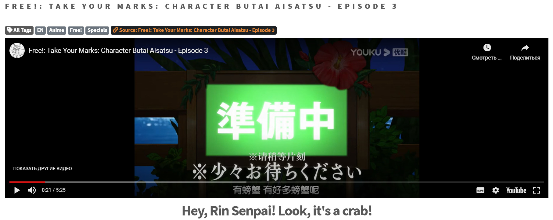 Субтитры идут на самом сайте, так что на расширение видео кликать не нужно, смотрим в окне.
