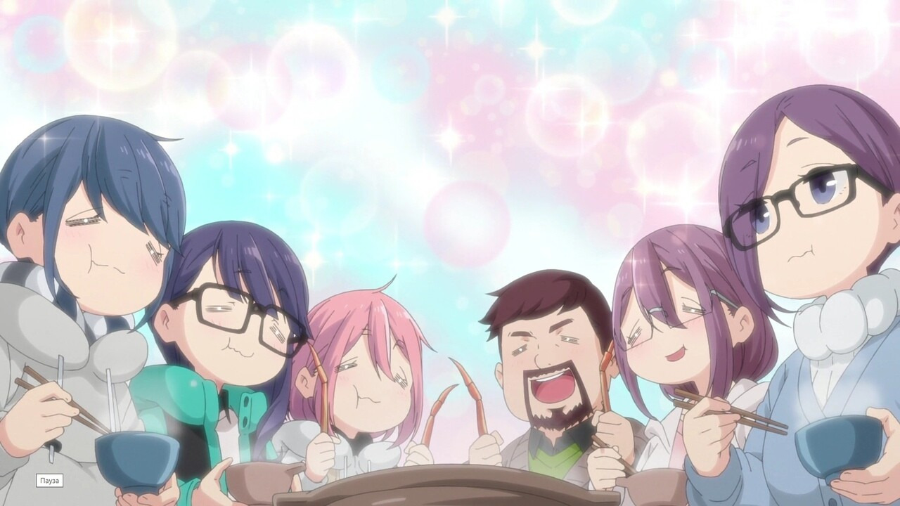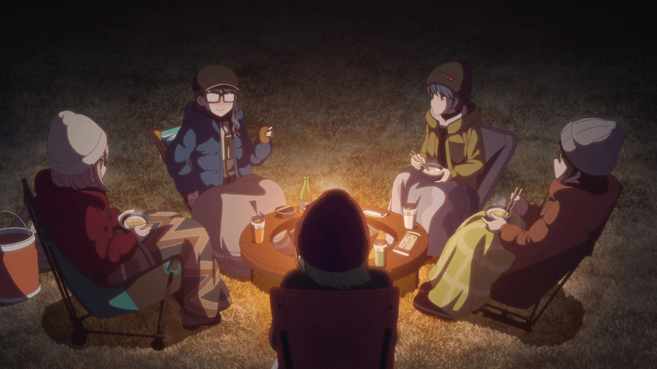 Уютный поход – это аниме-кемпинг, в который отправляются и девочки, и мы сами. Само аниме – это иллюзорный лагерь с зефирками, но сейчас героини отбросили готовый вариант, которым они пользовались раньше и показали свое взросление через создание нового, идеального кэмпинга для себя, своих семей, друзей и для нас.