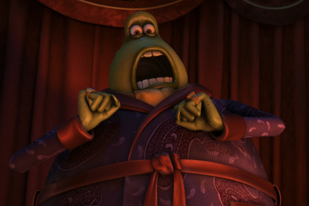 @Qwertyvich, Похож на Жаба из мультфильма «Смывайся».Атмосфера будущего и правда где-то потерялась, всё такое яркое, цветастое, жизнерадостное.