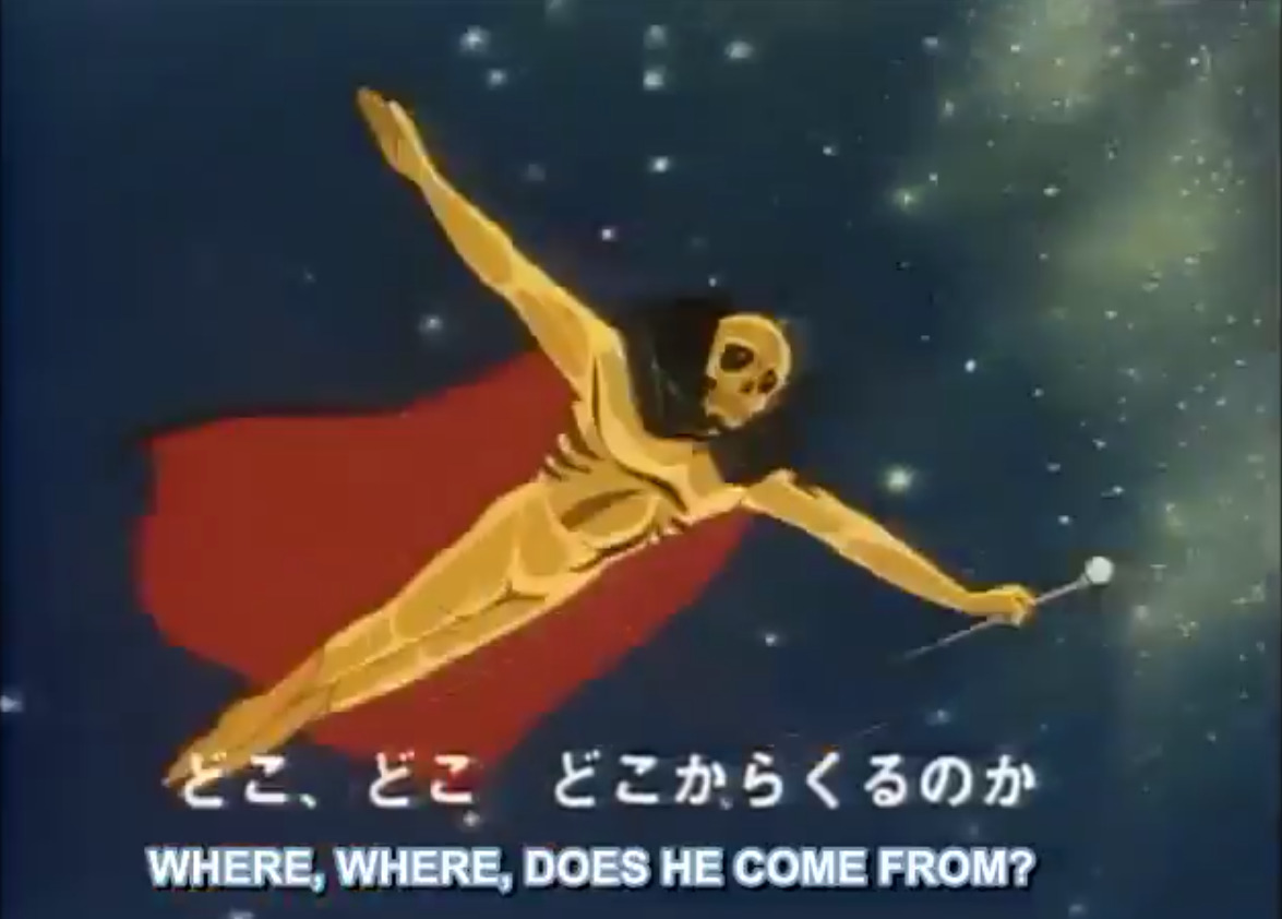 А вот сам супергерой здесь вполне необычный и даже жуткий. Впервые взглянув на , можно подумать, что перед нами какой-то ужастик из 90-х. В кои-то веки появление супергероя не осуществлено превращением в него мальчика-бисёнэна, здесь он просто пробудился ото сна в своём саркофаге, после . Забавно, что пробудился он от того, что его полили водой. Теперь буду знать, как работают те растущие в воде игрушки.