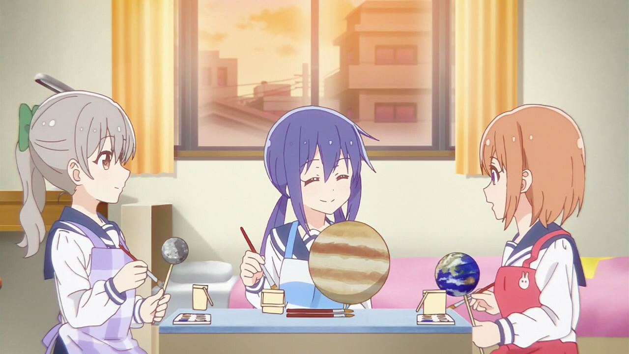 Сюжет. Ну, обычная повседневность, где две девочки ищут астероид, дабы назвать его Ао. Очень приятная повседневность, какой-то глубины сюжета тут нет, но это и не требуется. Персонажи приятные.