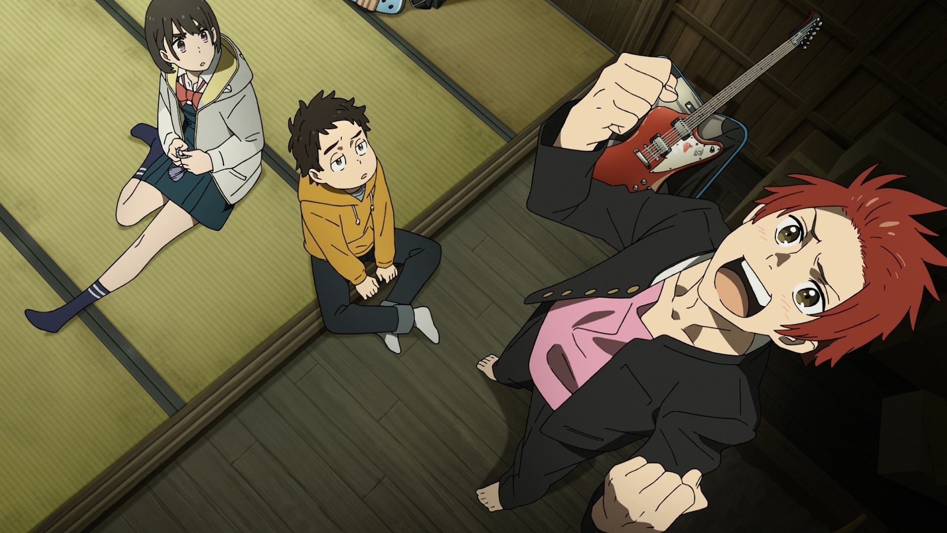 Например, это актуально в отношении персонажей Аой и ShinnoСинно. Первую нам раскрывают через прошлое, когда она познакомилась с членами музыкальной группы, а её фронтмен продемонстрировал ей азы игры на гитаре и пообещал Аой участие в своей команде, как она подрастёт. В связи с этим персонаж увлёкся басс гитарой и сам хотел отправиться в Токио для участия в музыкальной группе: по этой причине факт того, что она влюбилась в Синно, у кого она позаимствовала мечту даже вопреки своему упрямому характеру, вполне закономерен.
