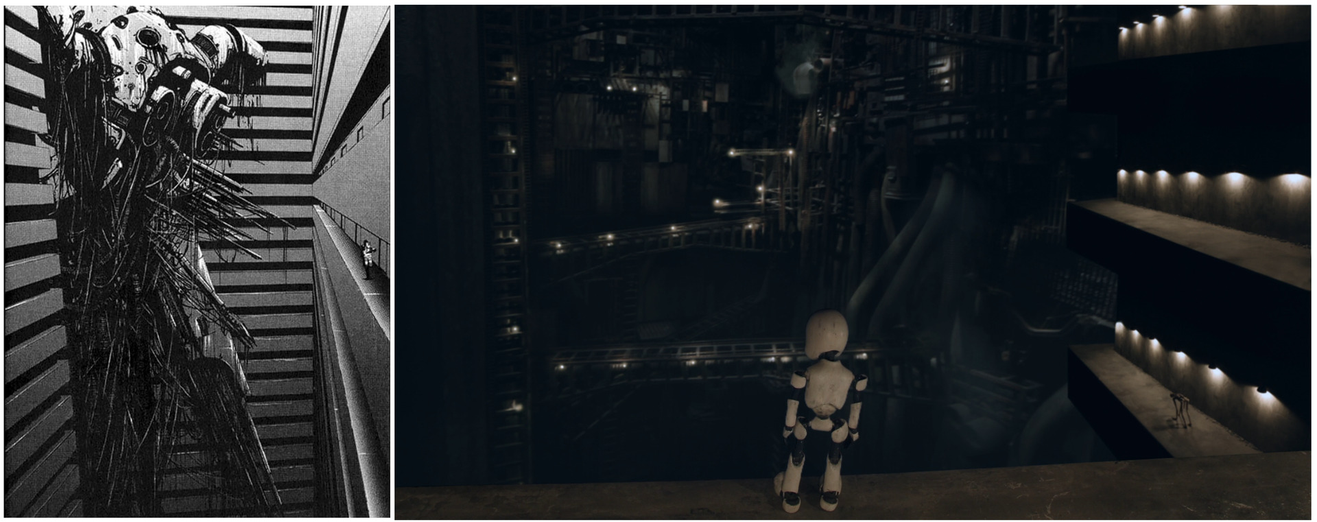 И Junk Head в полной мере реализует сильные стороны stop-motion. Мастерски слепленные из реальности куклы со всеми царапинами, потертостями и шероховатостями — отпечатками ручного труда — оживают на экране благодаря плавной анимации в 24 кадра в секунду. Локации, напоминающие древние бесконечные мегаструктуры из любимой манги Такахидэ «BLAME!», поражают скрупулезной детальностью проработки. Это настоящие, созданные вручную миниатюры гигантских промышленных руин, лабораторий, многоуровневых бетонных пещер и нагроможденных в красивом беспорядке проржавелых труб и проводов.