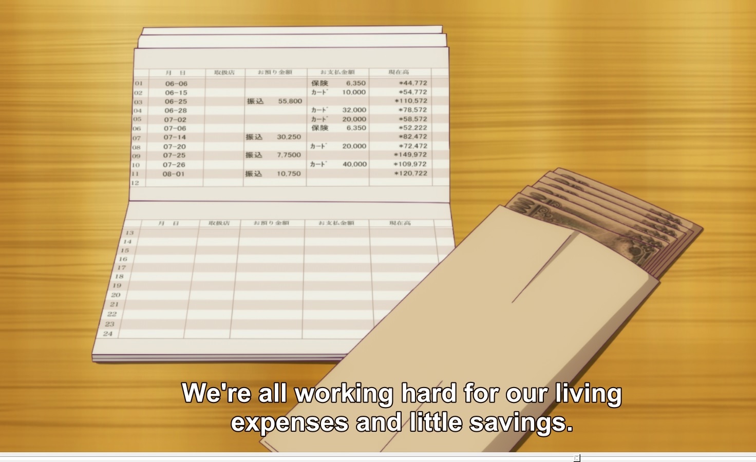 За месяц удалось накопить 42к (с 78к до 120к с учетом расходов на существование). То есть за оставшиеся 3 недели нужно заработать еще 340к (460к - 120к). Но он за месяц заработал только 42к. Тут Икуто и осознает свое отчаянное положение, поэтому срывается на сестре.