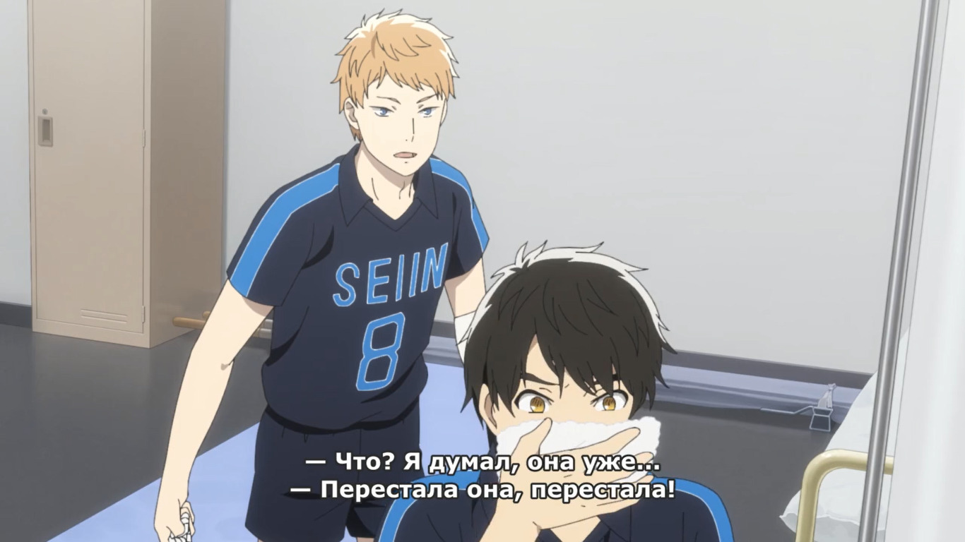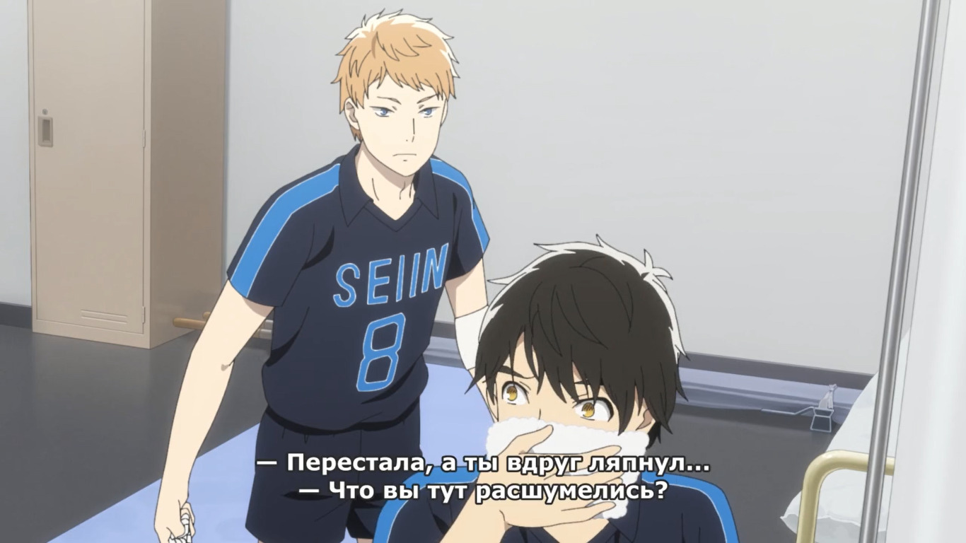Расписывать подробно не вижу смысла, ибо это споконовская чистейшая повседневка, очень такая суровая, неприятная и, пожалуй, с максимальным реализмом. Магию во время игры не добавляли, невероятные финты тоже не наблюдались, но и неинтересных матчей тоже не увидел. За первые 6 серий ни одного матча, к слову. Вторая половина уже пободрее шла, хотя матчи слишком быстро проходили и это один из главных недостатков. Автору поучится бы в экшеновой части у Haikyuu!!Волейбол!!, так как 90% аниме – сплошная болтовня, скучные угрюмые лица и бесконечные сомнения о предстоящих матчах, будущей жизни, командной работы и дружбе как таковой . Неопределённость – так бы я назвал основную направленность тайтла. Ещё раз, тайтл как спокон сам по себе не плох, но сценарий у него довольно упадническо–убогий, приятная картинка лишь слегка сглаживает. Я уже не говорю про второстепенных персонажей, которые так и остались не у дел, действующие лица для галочки, поддакивающие в нужный момент. Если вообще абстрагироваться от более успешных споконов, то данное произведение – это одна большая тренировка духа, тренировка в зале, тренировка своего я к взаимопониманию и взаимоотношениям с окружающими. Плохо ли это? Нет, но спорта за 12 серий не хватает и с этим ничего не поделать, увы. Наверно таким и должен быть самый приземлённый адекватный тайтл про спорт без кривляний и чудо энергий, но мы смотрим не фильм, а аниме, и здесь стандарты для заинтересованности несколько другие.