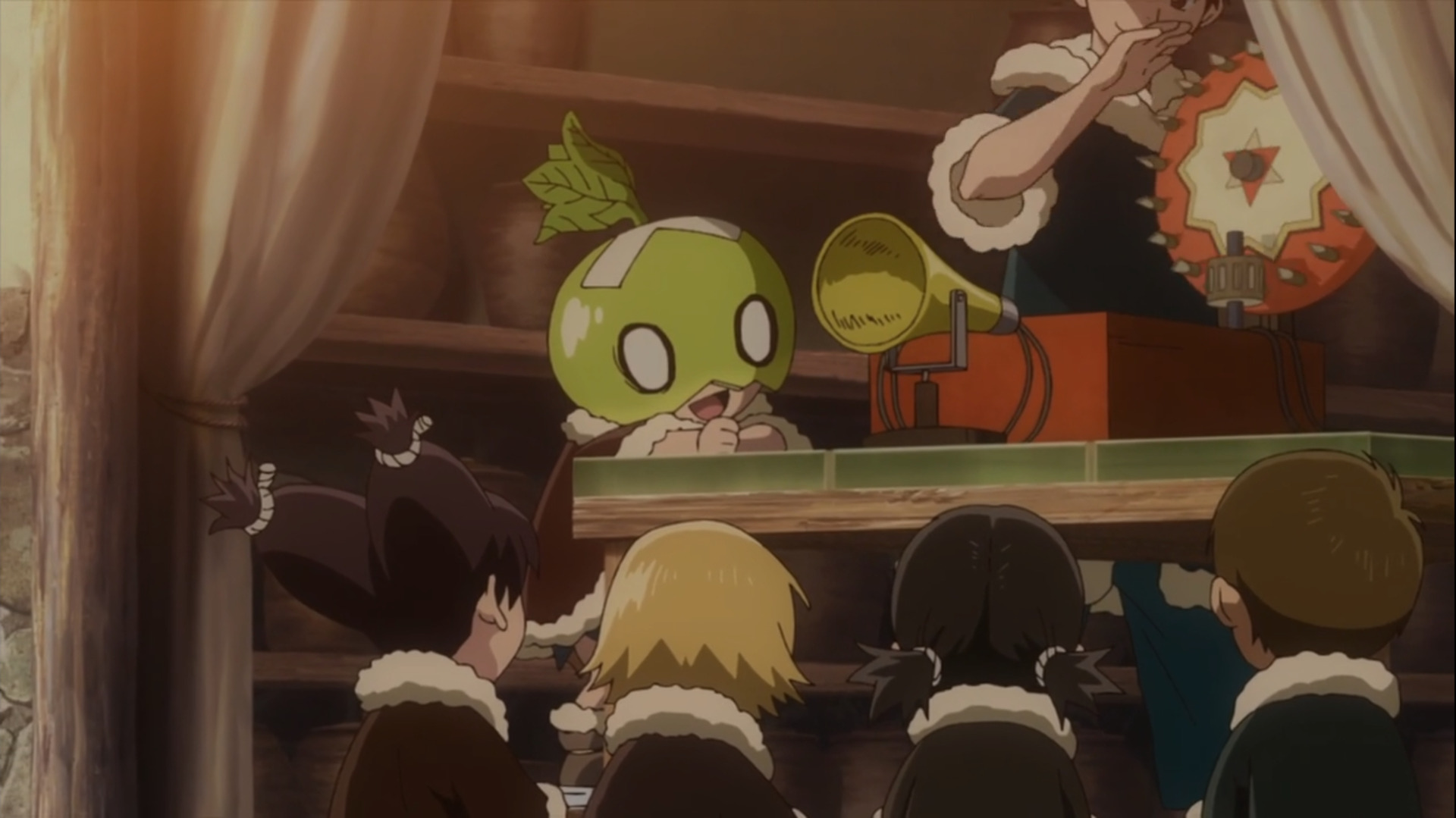 За что все полюбили Доктора Камня? За типичный сёнен сюжет? За интересных героев? Нет, и еще раз нет. Доктор Стоун полюбился всем прежде всего за свою атмосферу и подход к сложной теоретической части в научных отраслях. Здесь же атмосфера стала немного другой, нет былой ламповости и безалаберности. Герои в разы серьезней стали относиться к Цукасе, до этого Империя Силы мирными жителями деревни Ишигами воспринималась примерно как история о Момотаро. Цукаса был словно мифическим героем, которого никто никогда не видел (кроме Сенку и Кохаку). В Каменных Войнах все становится куда более ответственно. Все изобретения, что создаются, идут в копилочку, а не используются сразу.