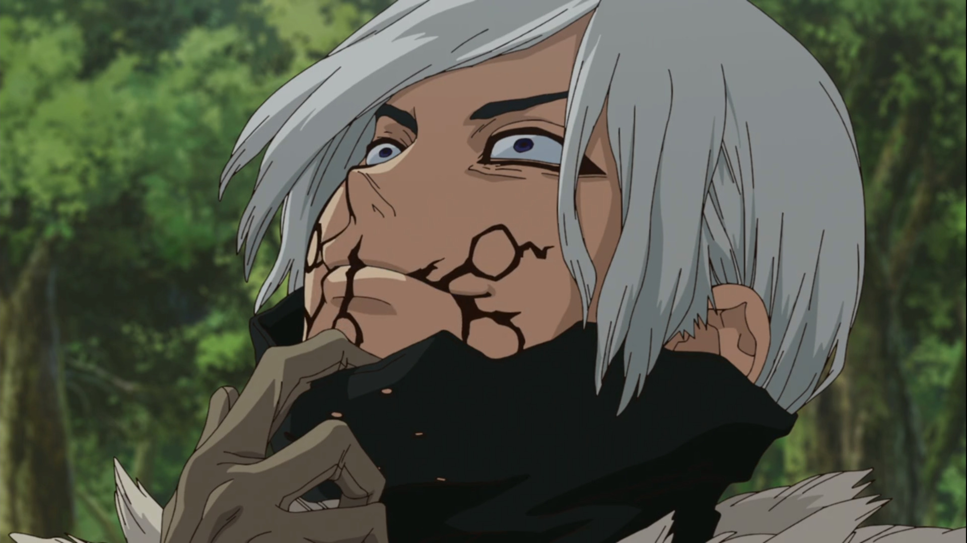 Я бы описала его как Гинро, но со стороны Цукасы. Достаточно глуп и ребячлив, хотя до окаменения работал в правоохранительных органах. В новом мире играет роль охранника, с чем плохо справляется из-за своей вспыльчивости, трусости и слабохарактерности.