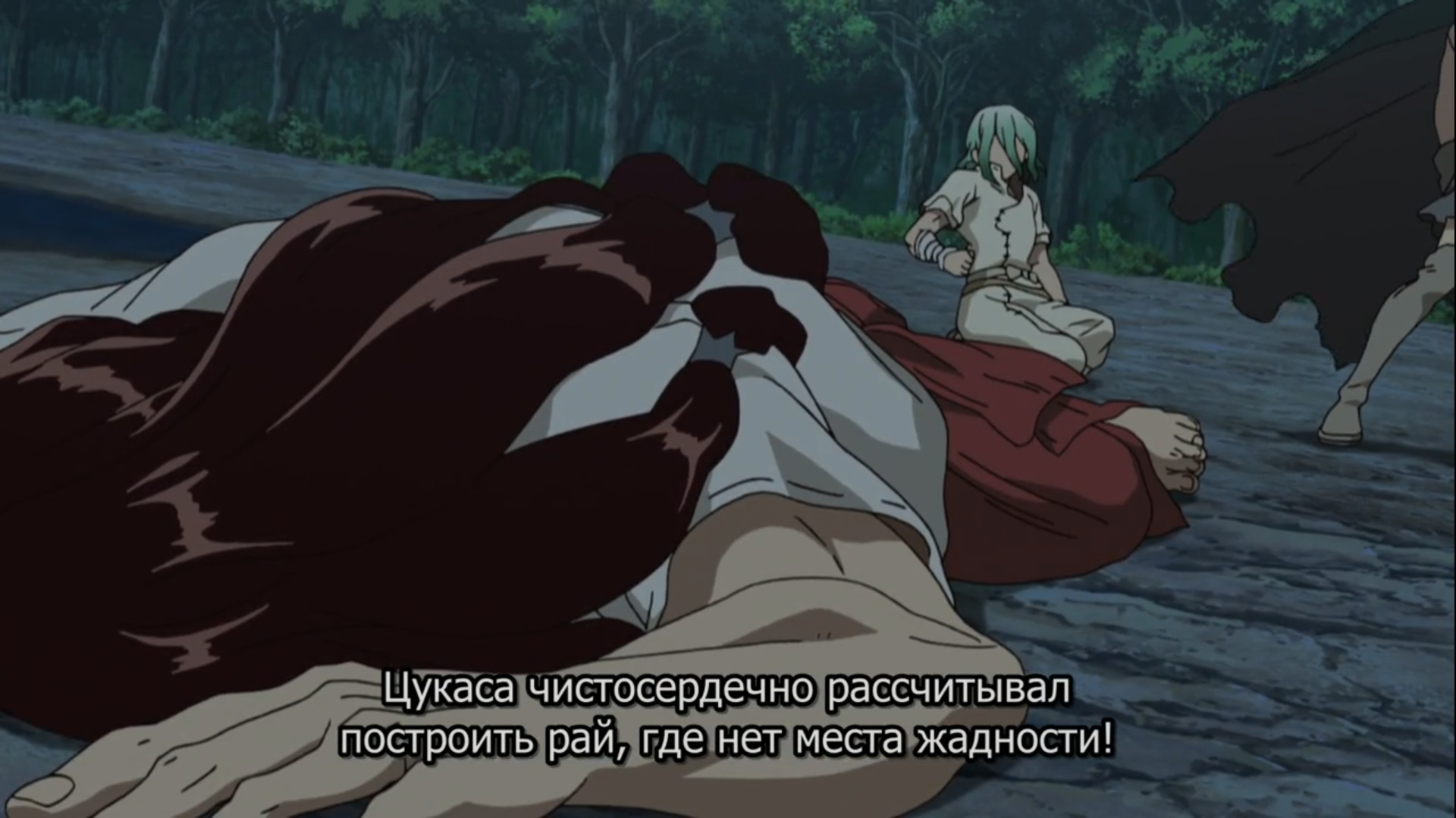 Несмотря на все эти моменты, Хёга признает Сенку достойным (еще бы, это же сам Сенку Ишигами) и даже предлагает присоедниться к его замыслу, на что получает мгновенный отказ. Если честно, авторы аниме как будто считают, что видение мира Сенку – единственное верное, пацифизм и никак иначе. Все кто думают иначе, нарекаются плохишами, а после перевоспитываются силой рамэна. Это похоже на приемы из детских мультфильмов и магию дружбы. Доктор Стоун в принципе постепенно превращается в учебник морали, не могу сказать, что это плохо, но как-то слишком навязчиво.