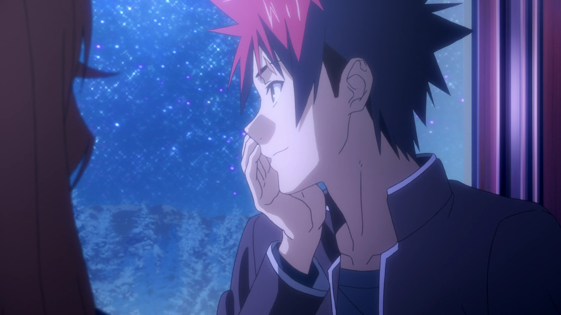 4) Вырезали шутку Сомы про то, что его батяня с кем-то переспал и получился антагонист, да и в принципе интриги по поводу принадлежности персонажа к семье Сомы нет, тут нам уже с порога говорят, что это не сводный брат Сомика, а именно какой-то левый мальчик, которого Юкихира старший подобрал и учил.