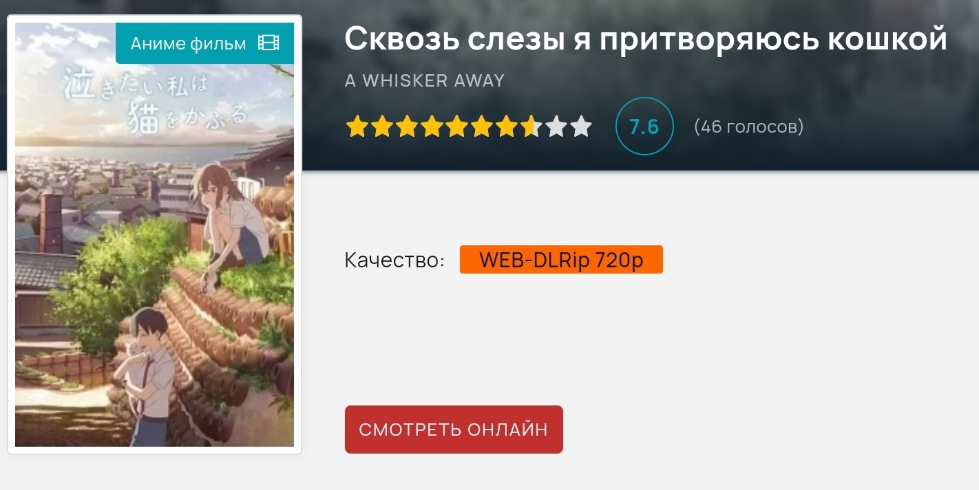 это, покажи со всех сторон даже без волшебных кошкодевочек, и получишь хорошую подростковую драму. Но в том беда, что всё оно только звучит - так, мимоходом, впопыхах, чтоб было, в визуальной-то медиа. Оттуда и мысль про мангу-первоисточник, в которой всё это раскрывалось, и откуда режиссёр экранизации только похватал общие мысли, не сумев адекватно уместить в хронометраж и заполнив пробелы неловким и странным юмором. Мангу, которой, как оказалось, не было.