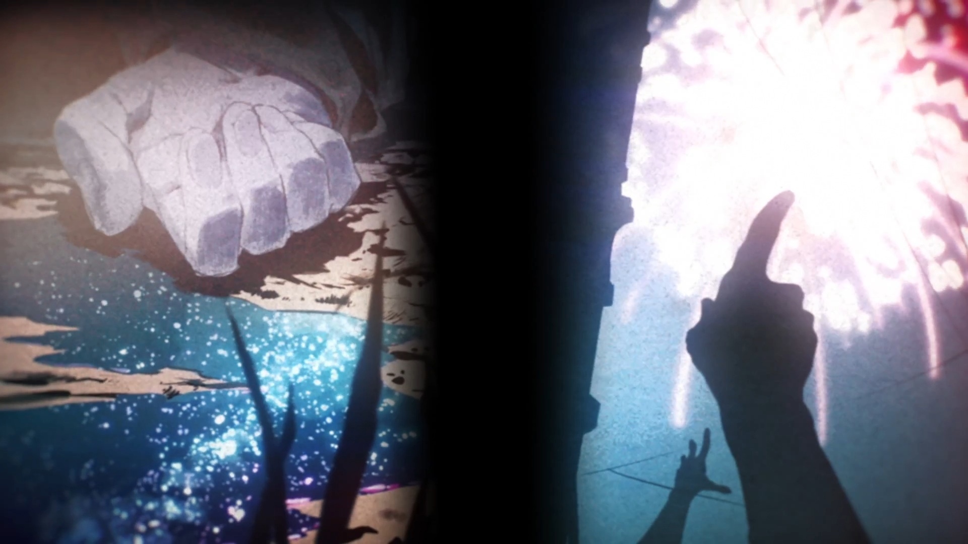 — контрастный темп повествования. Где нужно, аниме показывает медленную бытовую сцену, которая затем сменяется или даже перемешивается с динамической экшн баталией. Ещё сильнее это работает, когда параллельно показывают те же фейерверки, которые остаются ярким пятном в памяти людей, которые могут умереть (и умирают)в любой момент и непосредственно сам бой.