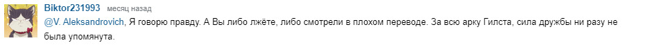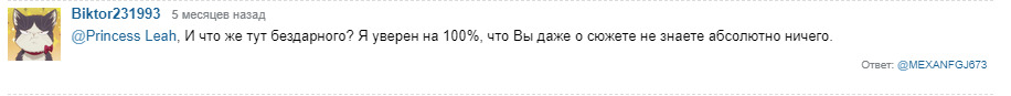 @Меняющий Лица@По уши в манге, Это слишком очевидно.@Biktor231993, Как предсказуемо@Меняющий Лица, мне интересно, а с фильмами у вас также? Если какой-то персонаж запомнился, то все, актер вами не воспринимается как другой персонаж? Если Бенедикт Кембербетч, то сразу Шерлок/доктор Стрендж, переключится на нового персонажа не получается? В общем обзор необъективен, автор явно смотрел сериал в пол, если не в четверть, уха.@Меняющий Лица@SadON,@Меняющий Лица, Вы кажется не там отзыв написали. Вам не произведение не нравиться, а мангака. Мангаки это немного другой раздел. У автора похожий дизайн персонажей и схожесть истории с его предыдущими работами, о ужас. Никогда такого не было и вот опять.