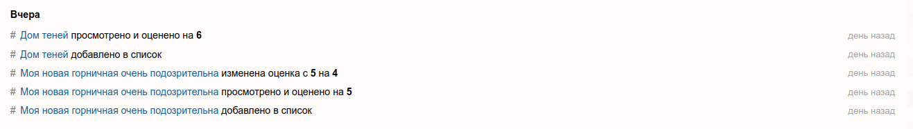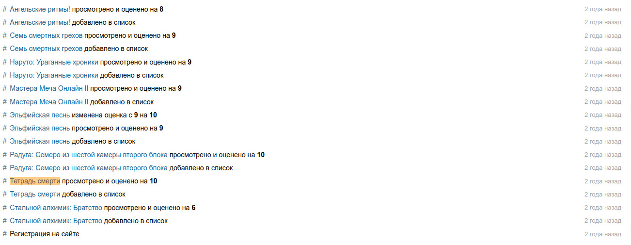 @Ergenty@pomatu, И как этот список связан с тем, что я поставил этому тайтлу? Сравнивать Тетрадь смерти и Дом теней это конечно мощно.@pomatu@Ergenty, да просто еще раз угарнул со списка оценок, похоже реально на прогрессирующую депрессию, типа что тебя не вставляет как в тот самый первый раз когда ты смотрел наруто и тетрадь смерти) Впрочем у меня могло бы быть также, ведь тетрадь смерти это первое, что я смотрел, а исправлять мне что-то лень. А так мне пофиг, ставь что хочешь, для меня на шики оценки впринципе уже давно не критерий...Тупо вообще с рутрекера качал раздачи где побольше сидов с рандомным тайтлом, а потом на шики оказываются оценки около 6рки... Вот тогда я и прозрел по поводу value у этих всех оценок и рейтингов)