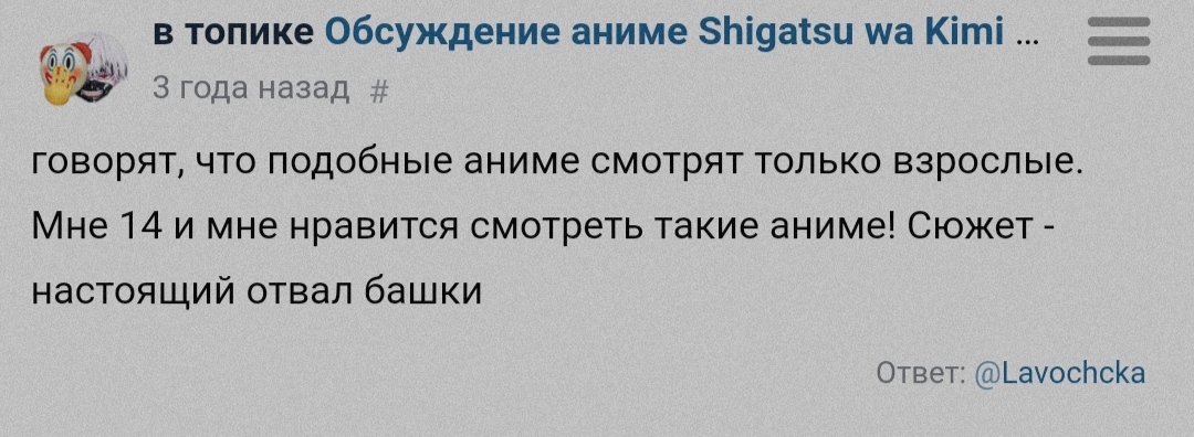 @муррейни@dmoloshy@муррейни, я не конкретно за тебя писал, ты для своих лет (возраст конечно, я твой точно не знаю, но как установило следствие младше 18) вполне адекватная. И дискриминации никакой нет, и люблю я не маленький девочек, а конкретно тебя малыха ❤️."Порой в таком возрасте, ведут себя адекватнее" исключения бывают. Возраст не так работает, что когда тебе исполняется н-ое кол-во лет - ты как в видеоигре получаешь достижение и мгновенно умнеешь/мудреешь. Возраст подразумевает лишь, что ты прожил определенное кол-во лет - следовательно у тебя было больше времени и возможности что-то осознать.