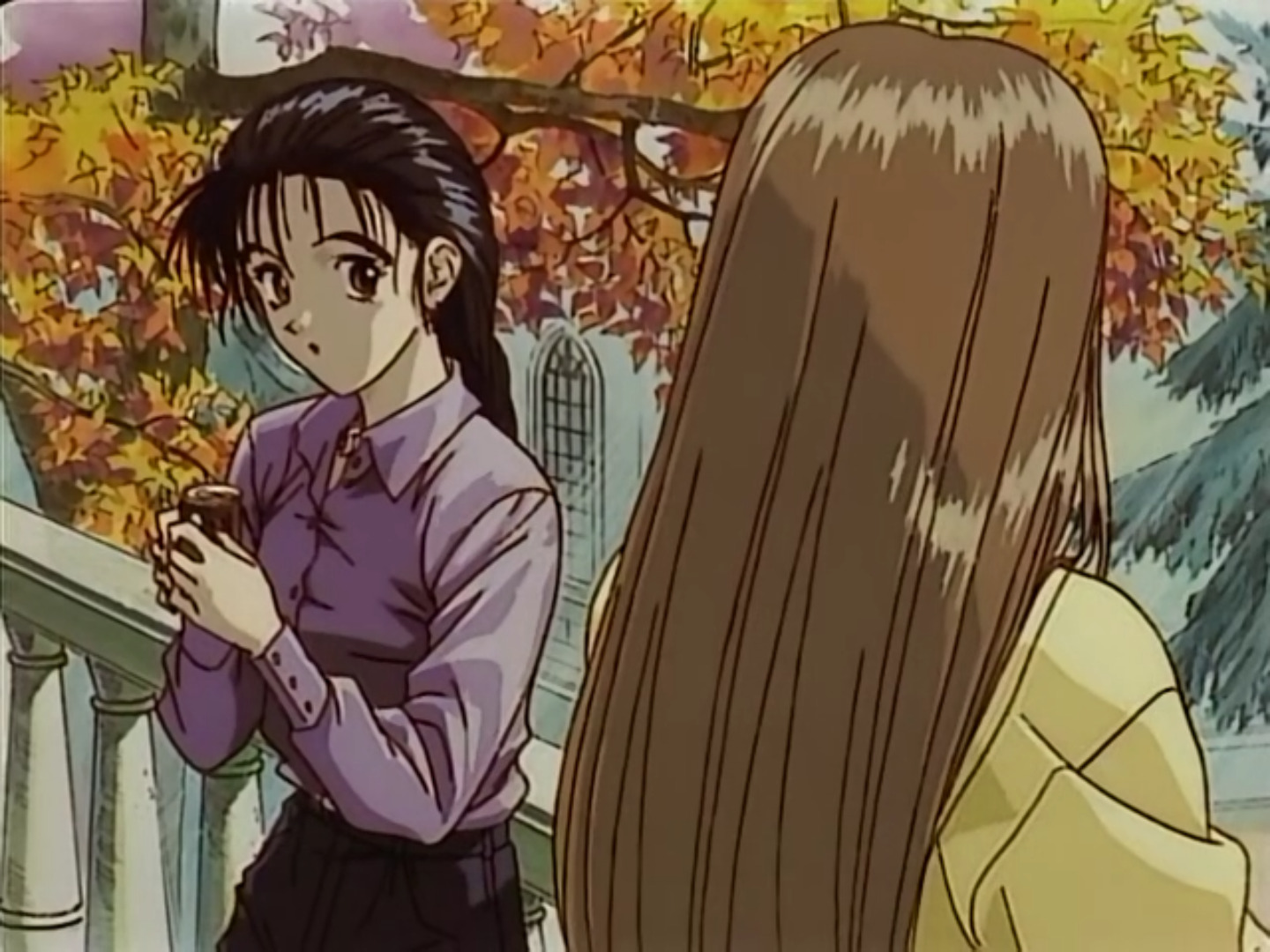 Так вот, к чему я все это? К тому, что всё, что между резкой (неоправданной) сакуги, это чуть ли не визуальная новелла с редкими кадрами, без шевелящихся ртов, лишь саунд-эффекты и актерская игра. И это, на самом деле, круто. Новелла - это почти как аудиокнига, и ей только и остается погружать зрителя звуками и статичными картинками. Интересный такой вот пограничный опыт. Мало того, дак еще и статика какая! Помнится, в берсе не только мне вздумалось хвалить его за то, как он обращался с маленьким количеством денег. Намного лучше, чем это обычно происходит. Если не знать, то можно и просто свалить на "вот поэтому я не люблю старое аниме, уу", а если знать - даже восхититься. Этот подход, как можно догадаться, так же грамотно исполнен и здесь.
