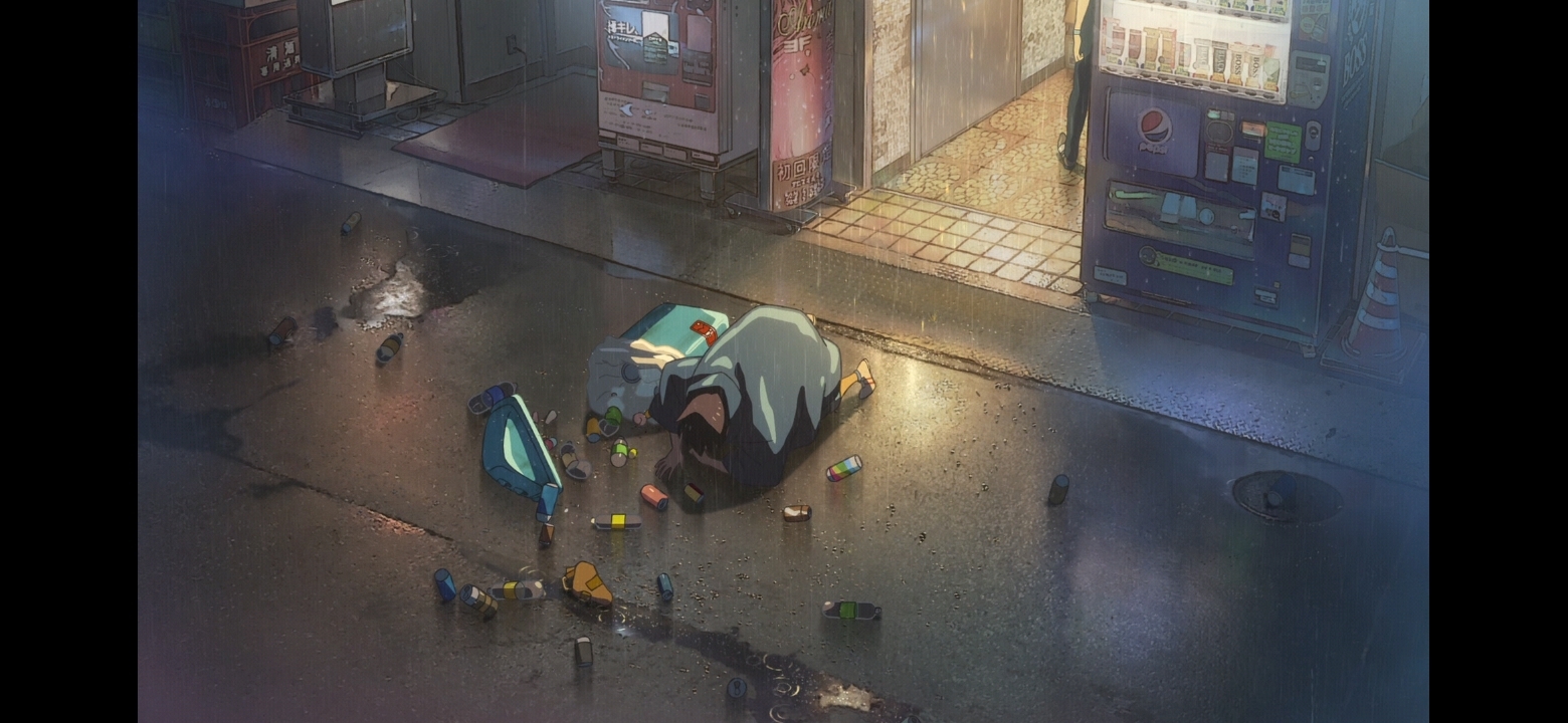 А по итогу лично для меня самыми запоминающимися моментами в фильме были сцены повседневности. Как главная героиня просыпается знойным летнем днём и куда-то едет на велосипеде, как стоит на остановке под ливнем, сцена путешествия на машине. Синкай и вправду очень неплохо умеет передавать ощущения вот именно в таких простых сценах. И я бы лучше посмотрел какое-нибудь максимально повседневное аниме от него, без дешёвое неубедительной фантастики и драмы, не про любовь и не про страдания. В идеале чтобы ещё и сюжет/персонажей написал не он а кто-то кто реально в это умеет. Такое посмотреть было бы и вправду интересно.
