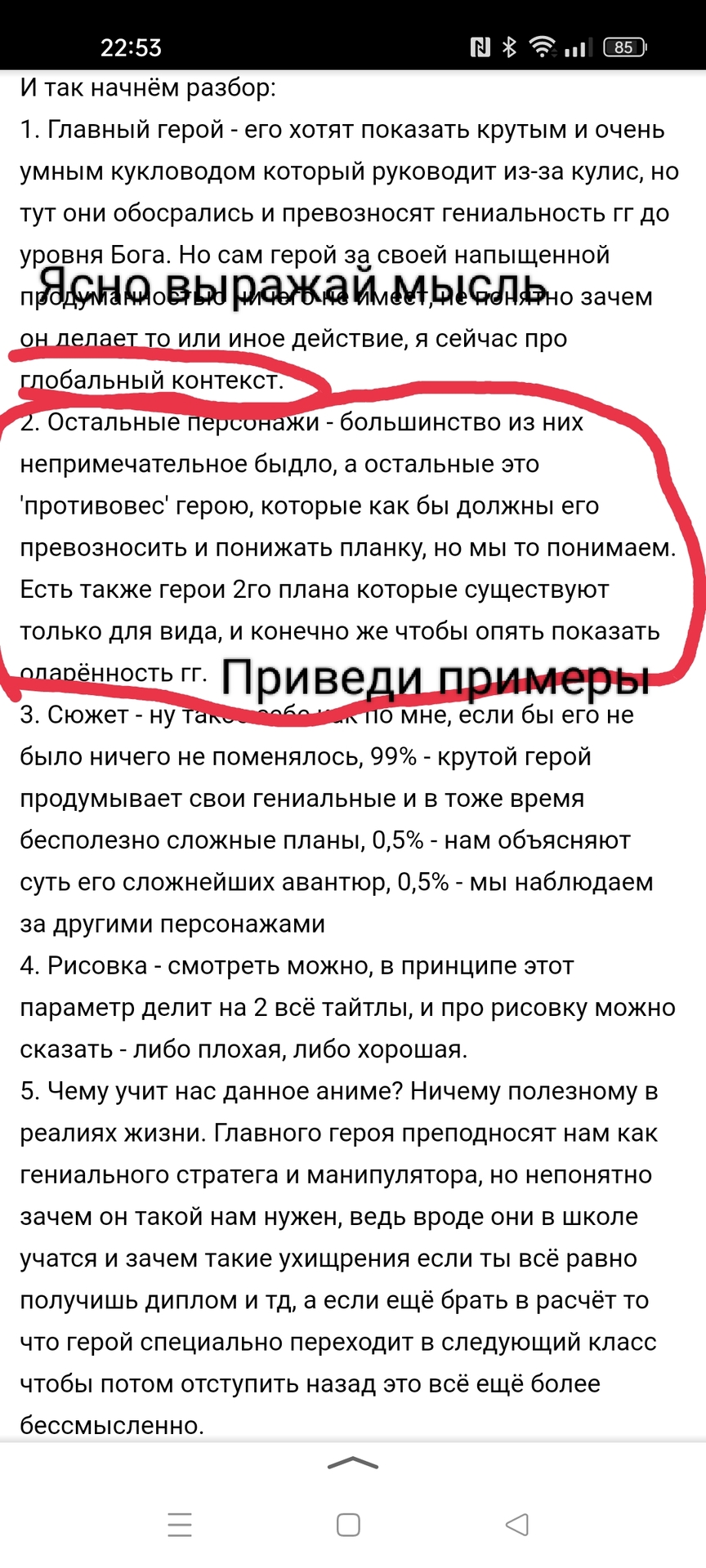 @leprosor@Friend34,@Captain Darwin,@Friend34@leprosor, а кто отвечает?@leprosor@Captain Darwin, я, конечно же@Friend34@easyesy@leprosor, Да, вопросы?@leprosor, Смешной тип, видимо тебе делать нефиг@easyesy, фига ты душнила…@Friend34, тетрадка норм но в конце я не справился с управлением и дропнул@Zamiakulkus, это аниме не оправдало просмотр его, я ведь ждал серий и смотрел. А сгорело у меня с видосов на ютубе про аянокоджи@nasilie, ты понимаешь что автор пишет не для себя, а чтобы прочитали и или посмотрели другие. Тут не на что смотреть, целевая аудитория не поймёт смысла действий гг и не сопоставит себя с ним. Я воспринимаю аниме по возрастному рейтингу и по жанрам, тут я просто потратил время на просмотр и не проникся 'крутым' гг которому на всё пофиг@nasilie@easyesy, дружище, это анимэ - вполне серьёзное, без особых шуток и "гэгов". По факту является психологическим, и по факту, действия гг обусловлены сюжетом. Нигде нету что-то наподобие: "я сделал для того, чтобы сделать". Позднее мотивация перерастет в нечто иное, но это уже спойлеры, будет в 4-5 сезоне. У тебя за 45 анимэ - с десяток на оценку 10. О чем с тобой говорить? Ты смотришь Врата Штейна с глупой повседневностью на 6 серий - и даже не хочешь за это оценку тайтлу снизить. Какое тебе анимэ с серьёзным сюжетом? Белоснёжка сёдзе - такая же оценка как у Врата Штейна. Представь себе, ты ставишь сёдзе анимэ - настолько высокую оценку. Без развития сюжета и отношений между персонажами. Анимэ, которое ты на 10-ку ставишь - абсолютно пустое и сопливое. Естественно, после такой "разгромной оценки" на класс превосходства, кой в разы лучше твоих сопливых историй без развития - лучше вообще поставить твоему отзыву диз. Зачем ты сюда лезешь?@easyesy@nasilie, я смотрю не на этом сайте и сюда просмотренные тайтлы не переношу, всё что тут просмотрено я просто перенёс и все@easyesy друг, если ты пишешь рецензию для других, то будь добр более точно выражать свои мысли. Это не в защиту данного тайтла, но читая твою рецензию, я выделил несколько проблем: что именно имеет автор? мог бы поподробнее; нужен примерк данному тезису. И ты слишком не любишь гг.Я набросал на скорую руку тем моменты, которые я бы поменял и объяснил, что и тебе советую в твоих будующих рецензиях. Однако я бы придрался бы и к следующим частям твоей работы, но на телефоне не удобно редачить фотки. Мб тебе сериал не понравился, потому что вся ставка на гг. Честно, хз чем тебе он так не нравится. Если есть желание напиши сюда мне про гг, я может через не понимаю, а ты идейку какую-то подкинешь.