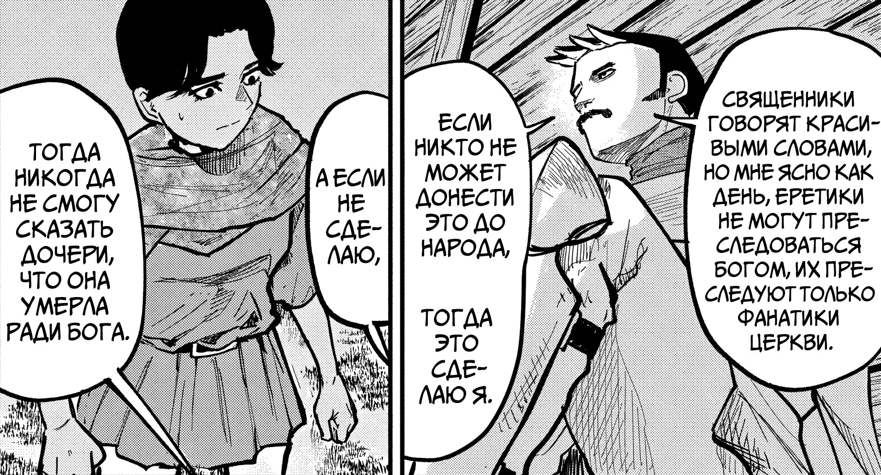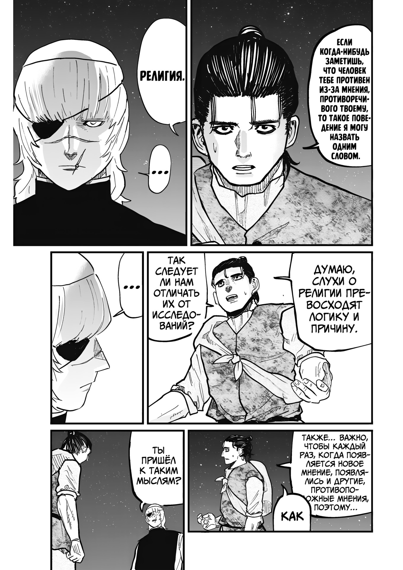 Как человек не религиозный, я не берусь оценивать теологическую составляющую тайтла, лишь заранее предупреждаю, что повествование сталкивает людей с разным отношением к вере и религии, не провозглашая какую-либо из них как истину в последней инстанции, а лишь пытаясь придать истории большую реалистичность. Собственно, это один из краеугольных камней для человечества и по сей день.