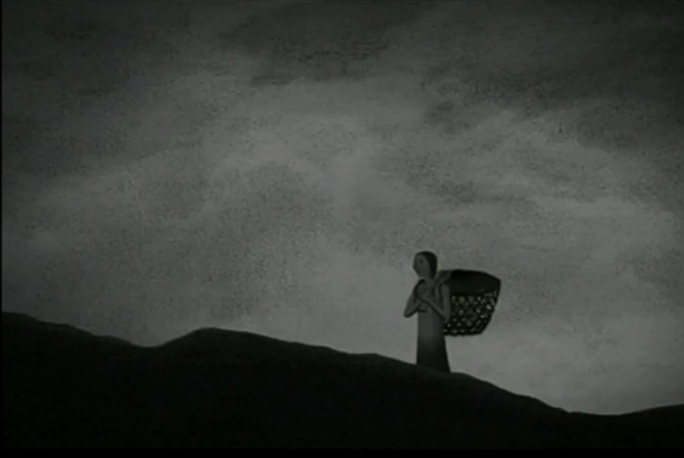 Звуковое сопровождение не меньше сосредоточена на дискомфорте. Скрип, гудение, дребезжание. В прочем, вступительная музыка (барабан и что-то вроде варгана) довольно приятная и шорохи не вызывают неприязни. Человеческой речи нет, только вставки текста, типичные для немого кино. О, я смотрел без русского перевода и едва понимаю английский язык, так что мог что-то упустить, приношу извинения за свою некомпетентность. В прочем, разговоров не так много и пропустивший их зритель не утрачивает понимание происходящего.