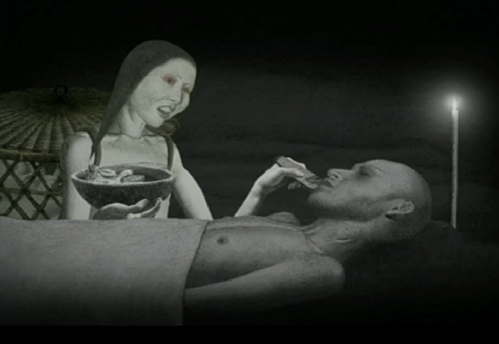 Я не смог установить степень родства другого действующего лица (держит нож на постере). Её деятельность сосредоточена на разделке мяса и непосредственно готовке, но также можно застать за употреблением в пищу засохших мелких животных (также принимает участие в уходе за больным). В итоге похищает ребёнка и заживо варит его в супе, изображённом на переднем плане постера. В целом для неё не существует эмоций или морали, всё, что волнует — нескончаемый голод.