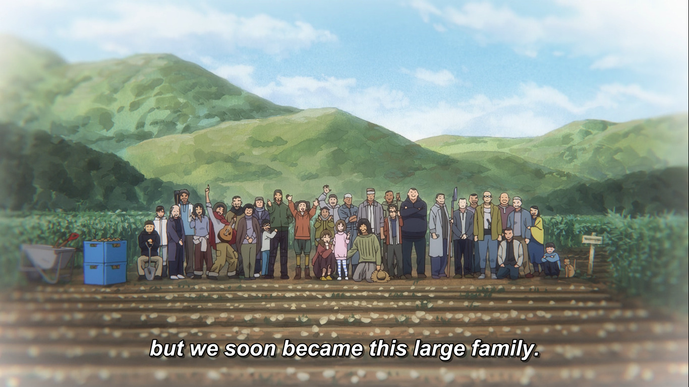 - Так же довольно не плохо прописан и сам мир, он вроде бы разрушен и стоит на руинах "бывшей" цивилизации, но в тот же момент большая часть людей всё же собирается в "общины" и "коммуны", которые в целом работают сообща, у многих из них понятие - рай, трактовалось по разному, для кого-то "рай" выступал в роде крупных посадок "помидоров", у кого-то рай ассоциировался с мирной жизнью и определённостью, но по сути большинство людей не отчаялись и вполне стали восстанавливать "прежнюю" жизнь на столько, на сколько это возможно, как из примера , либо же ещё примерОбщина людей, которая нам повстречалась в первый раз с главными героями, а именно небольшая деревушка, которая из трёх человек, выросла до нескольких десятков, у которых чётко распределены роли, род занятия и по сути каждый занят своим делом, будь-то работа в поле или караул/перевозка товара по морскому пути, т.е. наладили контакт с такими же выжившими., так же показали и отрицательную сторону людей, aka культкрупный городок, которая создала группа "восстанавливающих цивилизацию", которые по сути довольно много сделали для восстановления в рамках мини-городка, людям дали аналоги паспортов, возможность торговли на рынке, местную валюту, восстановили электростанцию и частично водоочистительное сооружение, так же дали распределения по навыкам и умениям + возможность выбрать самим не занятое помещения для проживания..идеи которых были из-за невежества и алчности неверны, ведь люди из этого культа специально подставили некоторых людей под удар и ложью заставили стихийную толпу взяться за ножи и "отвоевать" башню у бессмертного ордена, но по сути они ничего не получили, кроме некоторых людских жертв и электричества от солнечных батарей, правда кто ещё остался в выиграше (ведь в подвале один из Хируко - выжил) ну и конечно как же без них бандиты, которые не придумали ничего умнее, как толпой нападать на людей из засады)