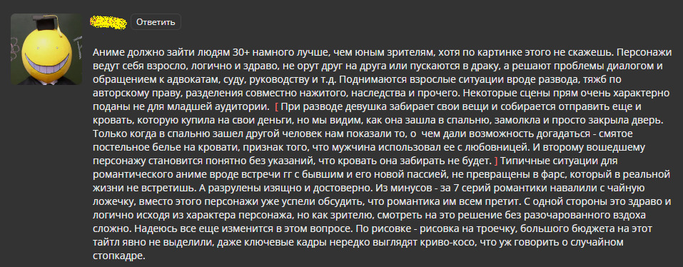 В какой-то момент, как это бывает, бытовуха стала слишком тяжким бременем при просмотре, героиня занимается своими не очень интересными делами, Вольфред всячески подстраивается и помогает Далии, окружающие очень хорошо относятся к ключевым персонажам, зла и ненависти в этом мире будто и нет. Кажется вымышленный мир под стать лучезарной девочки, которая исекайнулась, но её попаданство никак не обыграно и пару раз вскользь упомянуто за весь сериал – в самом начале и ближе к концу, рассказывая про грибок стопы. Картинка бюджетная, как и всё остальное, включая персонажей, музыку, лор, события, главную героиню, отсутствия интересных личностей, антагонистов и значимого сюжета, за которым было бы интересно наблюдать. Из схожего – Akagami no Shirayuki-himeКрасноволосая принцесса Белоснежка, ArteАрте, Eikoku Koi Monogatari EmmaЭмма — викторианская романтика на том же уровне, но вышедшие 5-15 лет назад.