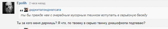 @EpolihЯ просто помню, как твоя дурная башка советовала мне рецки с КП и ИМДБ, а сейчас ты называешь их дегродскими. Мне в жизни тупости бы не хватило, посоветовать кому-то почитать тамошний дибилизм, но куда мне до тебя в этом.
