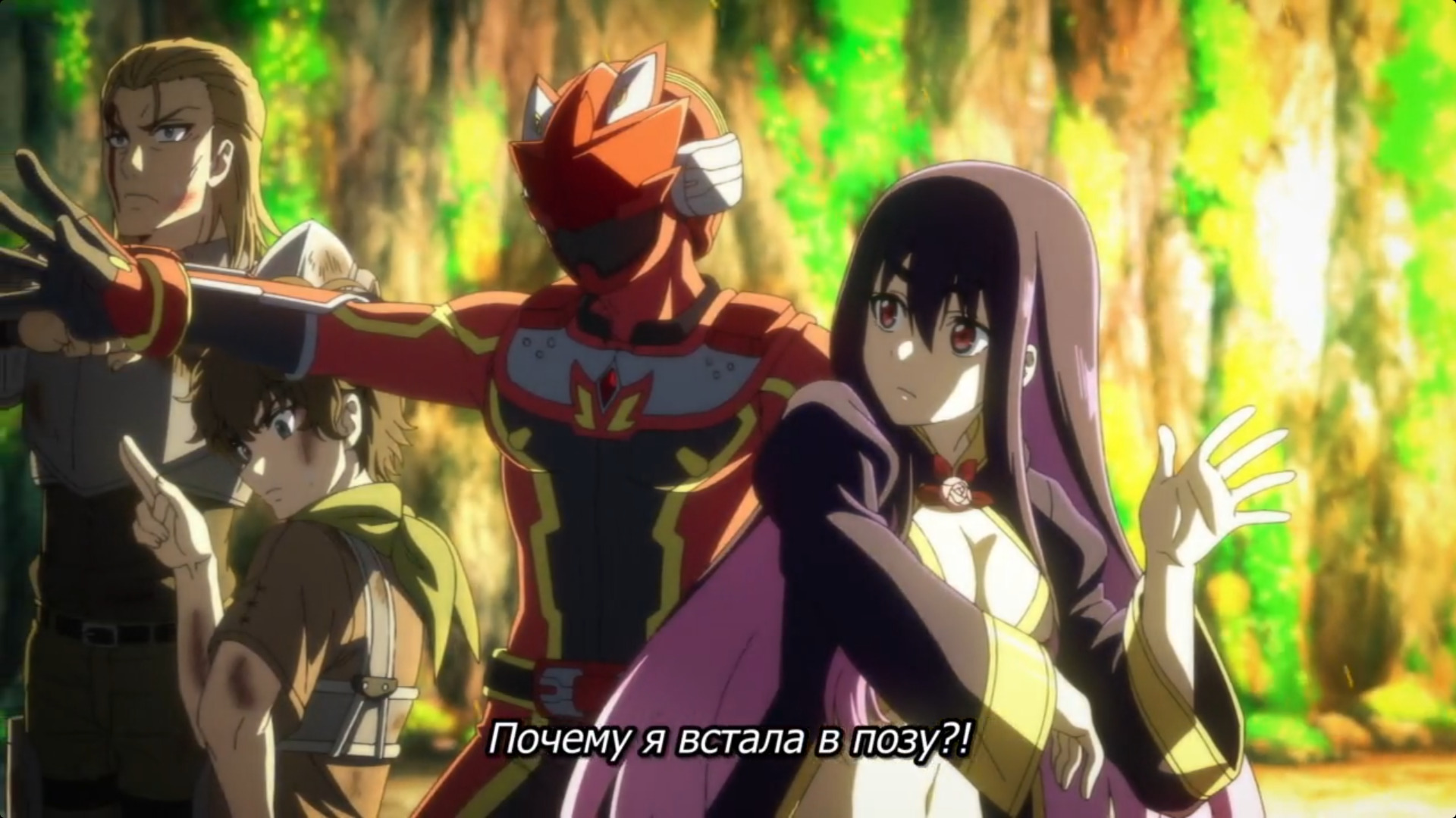 Изначально сложно предсказать о чём будет повествование, непонятная каша разных архетипов и троп. После просмотра подвести всё под короткое описание так же тяжело, но ясно одно - мне понравилось. Здесь есть комедия, экшн, драма... и, к моему удивлению, романтические отношения и персонажи которые развиваются. Лично для меня отношения персонажей здесь были самой интересной частью, включая флэшбэки гг, которые показывают его отношения с командой Рейнджеров. Один из главных плюсов - главный герой не дурак. Да, он конечно на каждом углу кричит про "силу дружбы", но он способен понимать эмоциональное состояние и чувства окружающих, он способен использовать логику и здравый разум. Персонажи развиваются и меняются на протяжении истории, они делают выводы, получают уроки и узнают что-то новое о себе и других. Я не знаю когда я последний раз вообще что-то такое видел и это классно. При этом набор второстепенных персонажей не безликие NPC, а вполне самодостаточные личности, взаимодействия которых также интересно наблюдать. Однако, это комедия, поэтому драма и отношения качественно сбалансированы абсурдным юмором. Этот юмор присутствует в равной мере от начала и до конца, хоть ближе к концу понемногу замещается драмой.