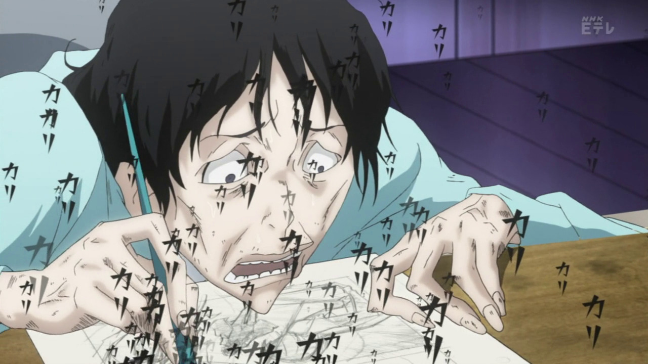 Еще эту историю часто критикуют за нереальность сюжета, претендующего на slice of life. Нам рассказывают о том, как сложно стать известным мангакой, но в то же время показывают, как 14-15-летние подростки этого добиваются. Есть ли популярные мангаки, которые еще школу не закончили? Вряд ли: я прочитала много манги и не припомню авторов, которые добились бы такого успеха в подростковом возрасте. Лейтмотивом сюжета проходит идея о том, КАК СЛОЖНО ВСТУПИТЬ В SHONEN JUMP, но наши главные герои приняты туда с первой попытки! Что касается меня, то я думаю, что этот выбор авторы сделали в пользу интересной драмы и новизны истории, и мы с вами достаточно умны, чтобы знать, что уместно на страницах книг и в фильмах, но не случается в реальной жизни.