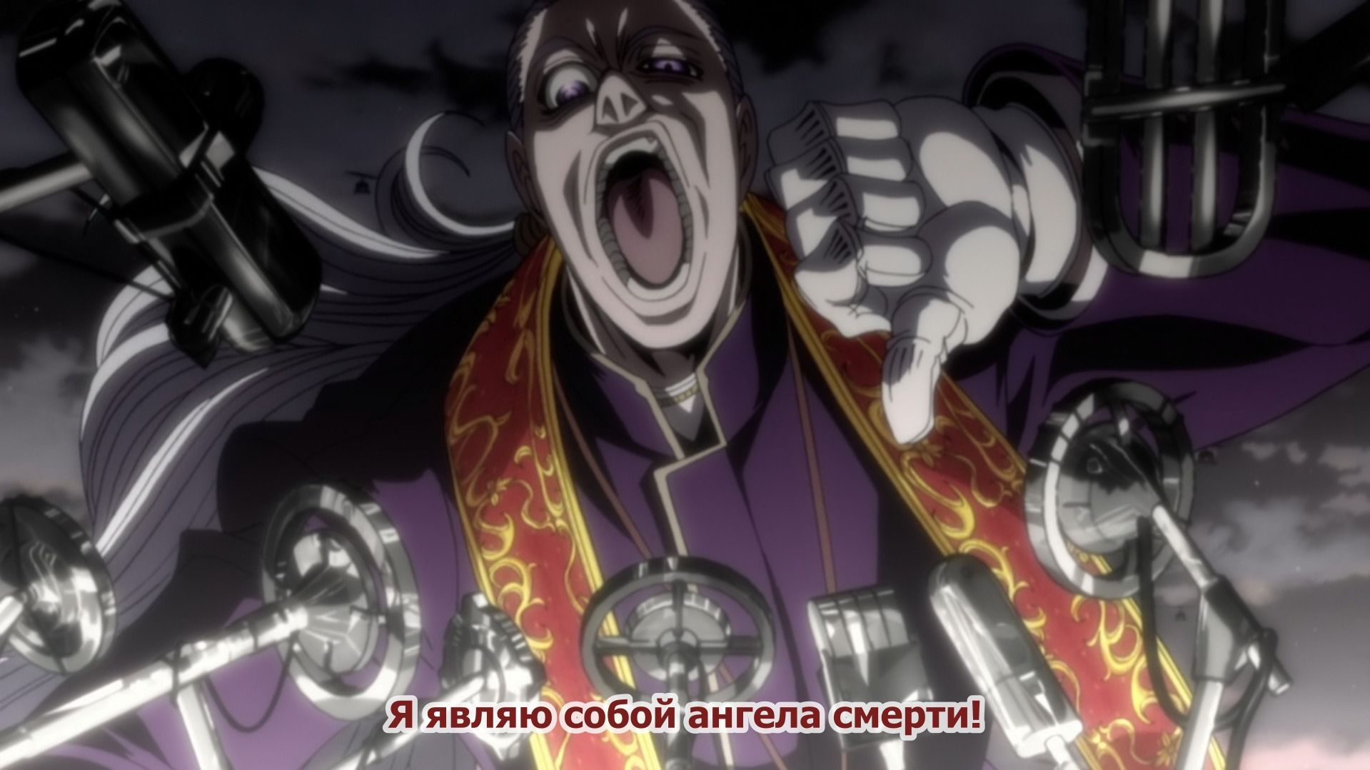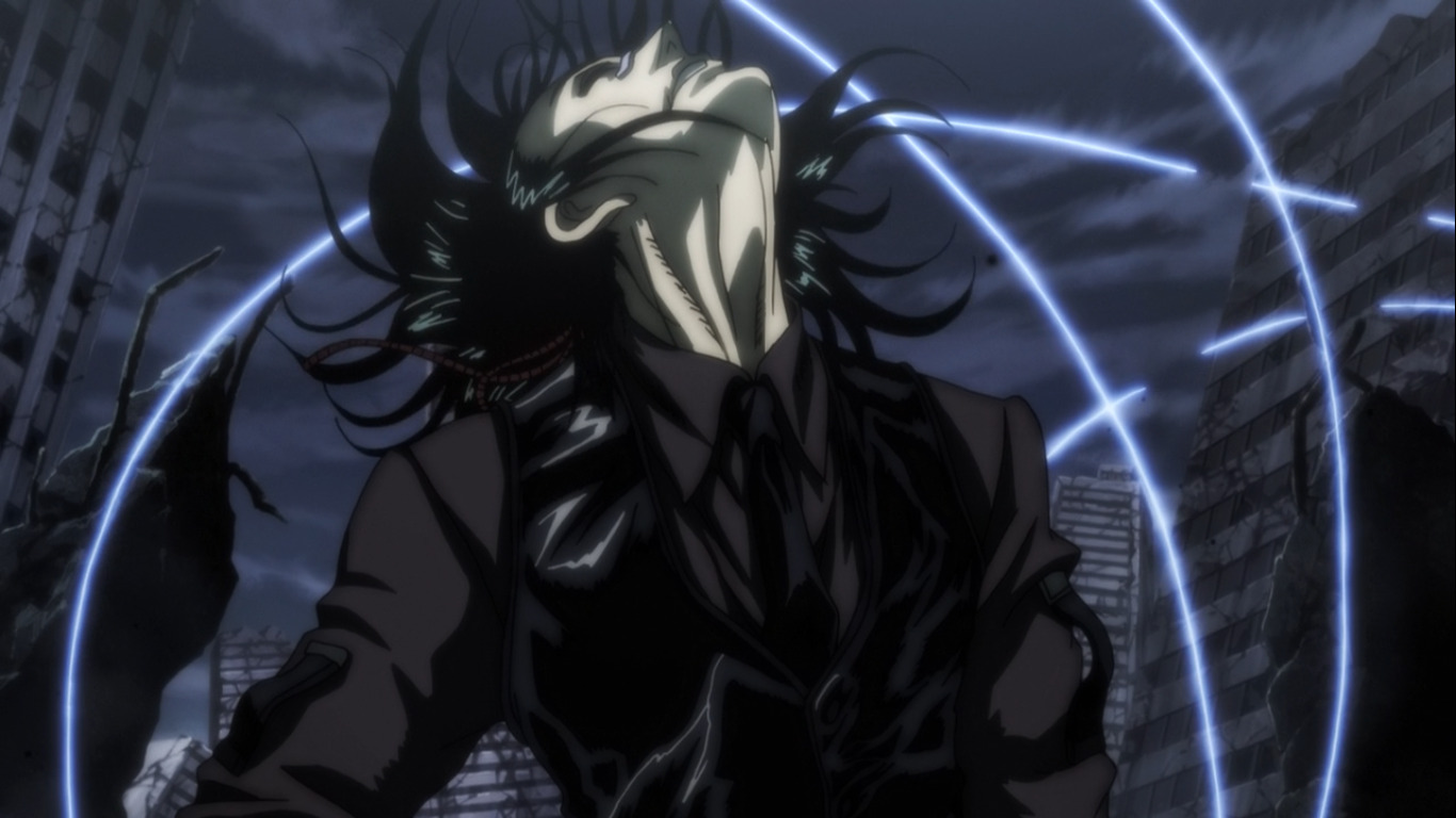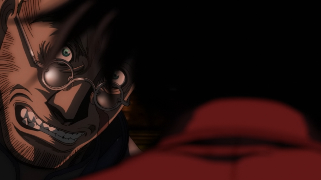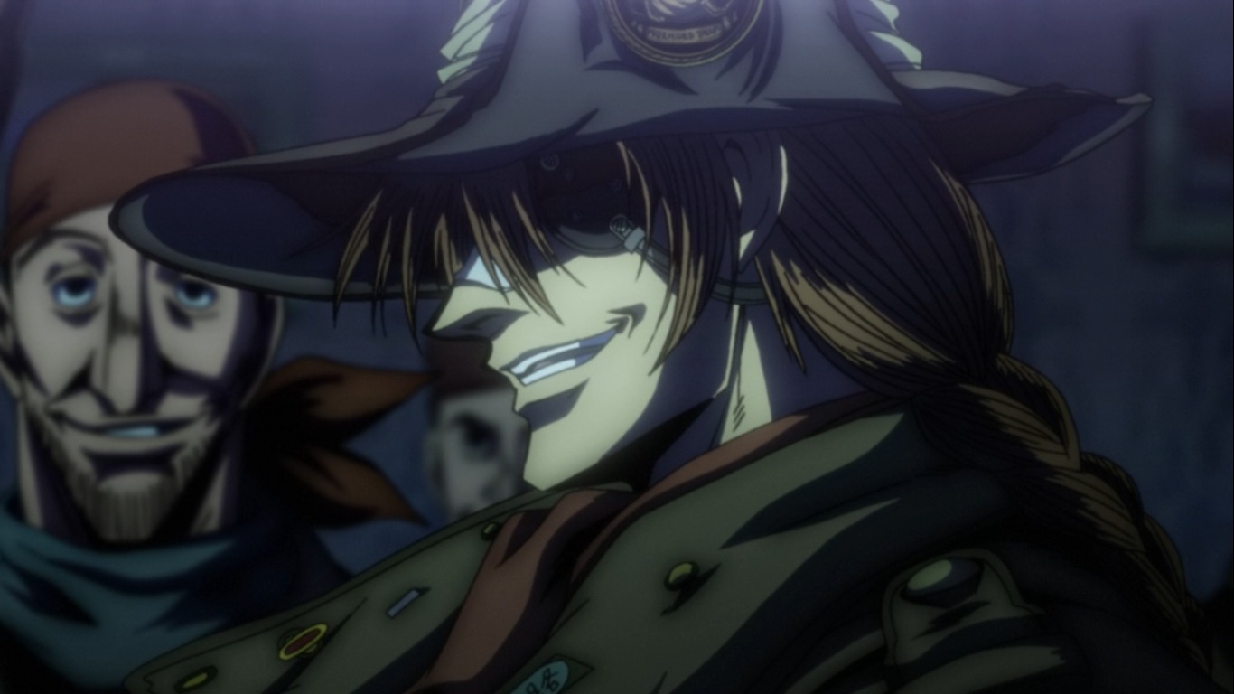 Конечно же, во многом оно лучше Войны с нечистью. Тут злодеи круче в сто раз, графика лучше, есть фирменная атмосфера пафоса и безумия. Но кое-в-чем старое аниме все же лучше. Алукард в новом аниме важный, сильный, кровожадный, но даже когда нам показывают его прошлое, он не воспринимается, как древнее существо. Скорее, как просто садист на пафосе, который иногда к месту, а иногда вызывает дурацкий смех. Интегра стала чуть более самоуверенной и склонной к жестокости (когда в 3 серии она прямо благословила Алукарда на бойню, я офигел – не верю, не верю я, что Сэр Интегра могла вот так поступить без видимых на то причин). Серас в прошлом сериале куда больше времени выделили на осознание своей нечеловеческой стороны, а в Ультимейте она, конечно, развивается, но в большей степени физически, чем духовно, постепенно становясь все более и более сильным вампиром. А ещё здесь так себе саундтрек. Нет, он в принципе создаёт настроение. Но в сериале он как бы не отдельным героем выступал, вытягивая на себе даже самые унылые сцены. Местами, конечно, в Ультимейте проскакивает что-то похожее, но АКУМА СТОКИНГ ДУ-ДУ-БИ-ДУ всё же не дотягивает до ЕЕЕЕЕЕ-Е-ЕЕЕЕЕ-ЕЕЕЕЕЕЕЕЕЕ или ДУДУ-ДУУУУУ-ДУДУДУ, ДУДУДУУУУ-ДУДУДУ (последняя, кстати, мелькнула в одном из эндингов).