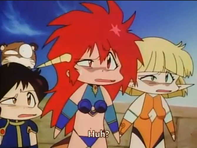 Ну я бы сказал, что это ближе к Di Gi CharatДи-Ги Карат из конца 90-ых, чем к SlayersРубаки того же периода по юмору (но, само-собой, не по сеттингу) и к тайтлам более древнего периода "фарс-треша" в духе [The Choujo]. Прогрессивная в своей наркомании штука. Но всё равно это скорее кринж на кринже, а не хитрость. Примечу Shinya SadamitsuСинъя Садамицу как режиссёра в этой области своего времени. Похоже, у него много работ по комедийному направлению.