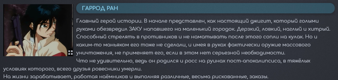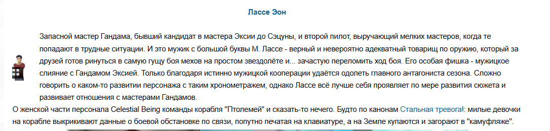И все с персонажем было отлично, ровно до тек пор, пока он не встретил Тиффу и не стал членов экипажа «Freeden». Где он стал проявлять стандартные замашки ОЯШа.