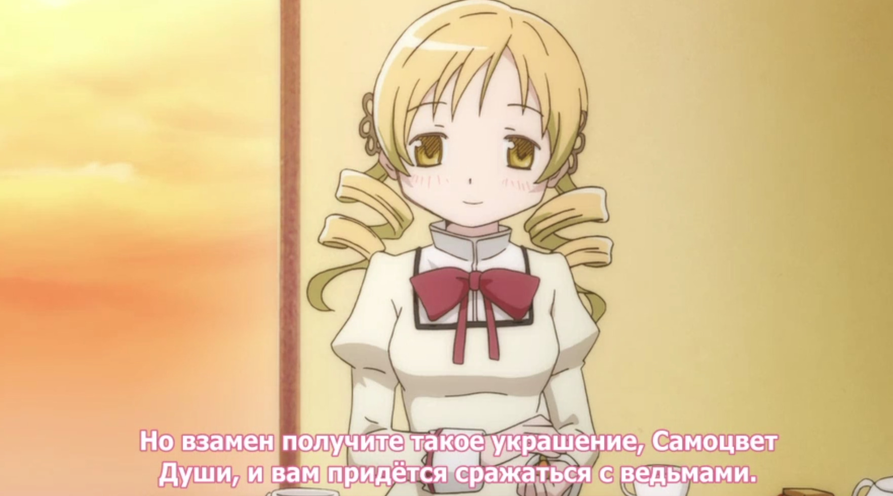 Перед раскрытием этого момента объясню еще кое-что. Весь сок сюжета в том, что в определенный момент оказывается, что контракт не ограничивается той рекламной репликой из начала. Все. Вся несправедливость заключается в том, что главные героини даже не подумали поинтересоваться, а что, собственно, будет с ними. И дело не в том, что им примерно 11-13 лет: каждая встречная волшебница говорила, что это не какая-то игра, что они буквально себя в рабство за желание продают. Блин, за первые 5 серий нам только и делали, что говорили, что это серьезное дело, и у героинь должна была возникнуть хотя бы мысль, что спросить у предложившего контракт "а можно узнать чуть-чуть поподробнее?" было бы неплохой идеей - но нет, нафиг надо. Результат вполне предсказуем. Идеальный пример - тот самый твист из 6 серии, о котором все говорят. Я закину его под спойлер, но он настолько абсурден, что можете читать не боясь.