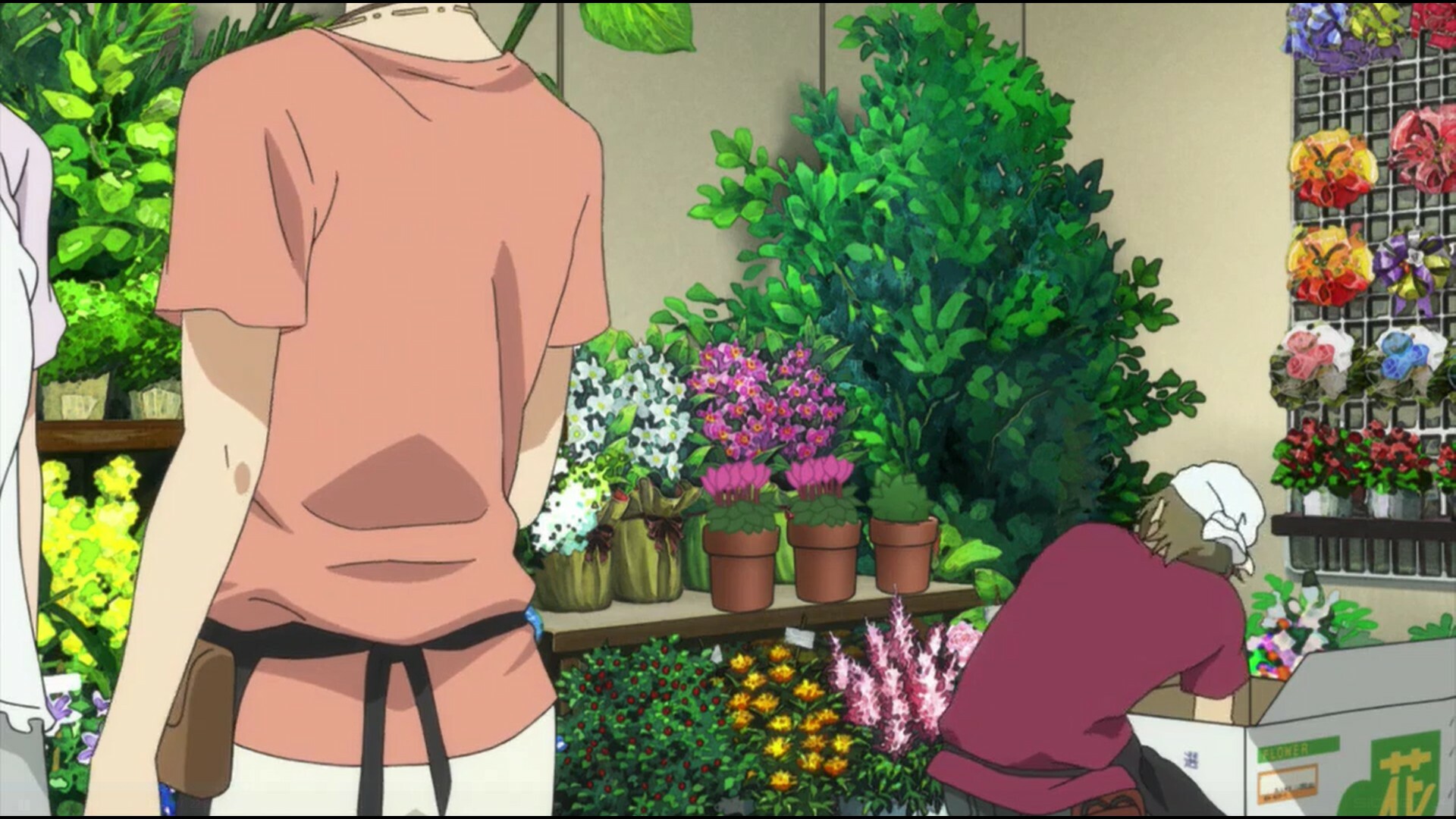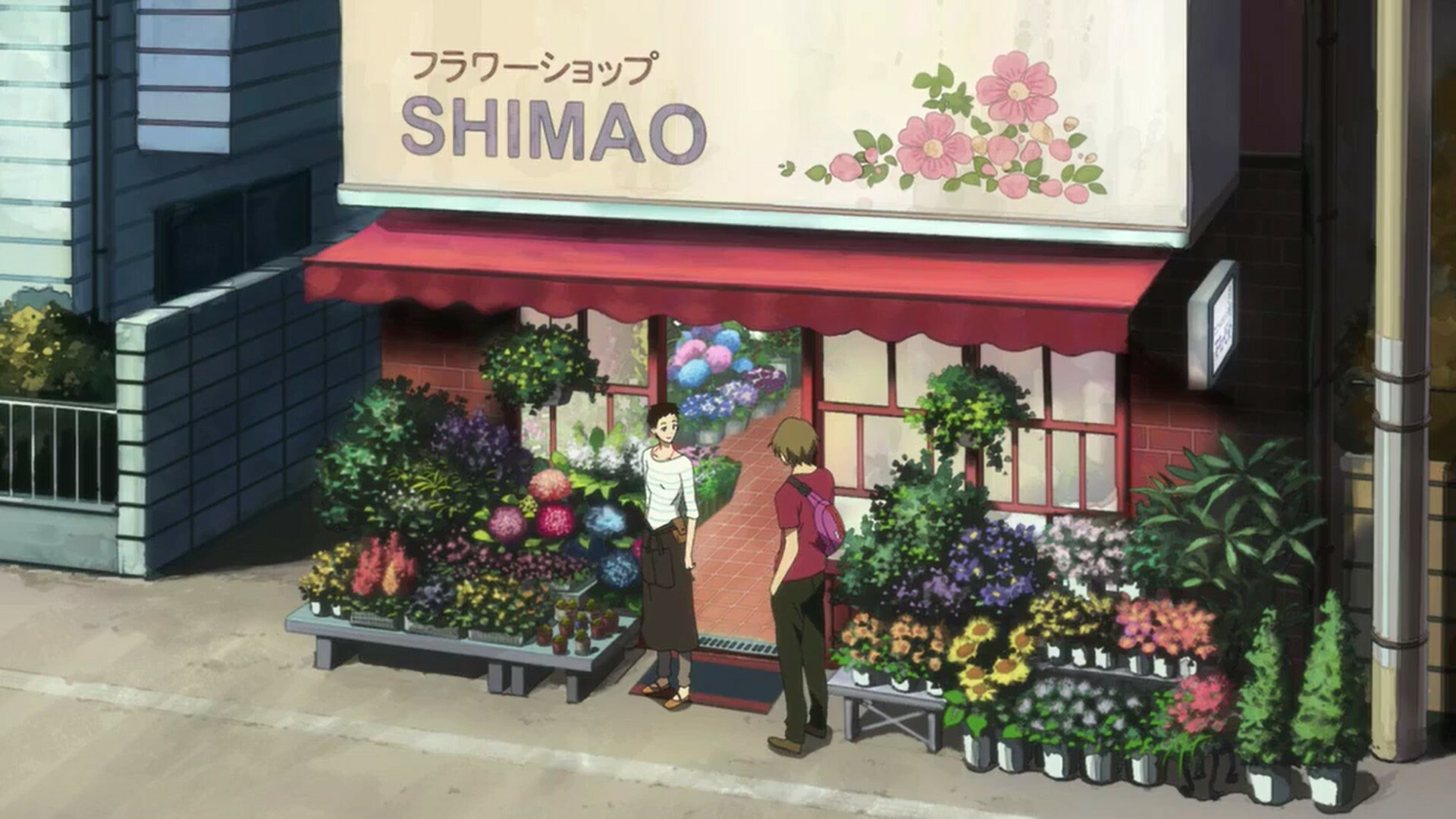 Цветочный магазин - это первое , что привлекает внимание, потому что на заднем плане нарисованы довольно красивые цветы. Многообразие различных сортов и обилие смешивающихся друг с другом красок и цветов - очень приятны на вид.