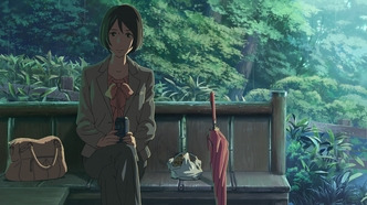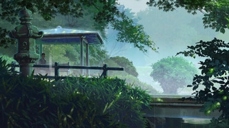 "Сад изящных слов" - из слов не сделаешь сад Романтический фильм, хотя идет всего на всего 46 минут. Это идет ему на пользу, так как все по делу и нет ничего лишнего. Но в тоже время это и минус, после просмотра чувствуется недосказанность, незаконченность. Вот все нам показали, а саму развязку оставили за кадром. Вот не люблю я такие открытые концовки, что тут поделать Рисовка красивая? это же Макото Синкай конечно да! Ну что я еще могу сказать? У него что не аниме, так максимально красивый визуал. (ну и романтика в разных видах) Музыкальное оформление ну очень понравилось. В моментах где их отношения развиваются играет бодрое пианино. Где грусть, там и медленный темп. А под конец так вообще весь оркестр просто взрывается, делая кадр живым и эмоциональным. Сюжет ну тут нормальный, не супер какой-то чарующий, но и не очень скучный. Герои развиваются, история идет своим чередом. Но как говорилось выше, она чувствуется недожатой. Самое интересное оставили за кадром, ну как так можно? Лучше был аниме длилось все 60 минут, тогда авторы смогли бы лучше героев раскрыть. Ну и нормальный конец сделать. А так посыл у аниме хороший, просто само произведение не дожали. А так могу советовать к просмотру, почему бы и нет. Приятные эмоции при просмотре точно будут.