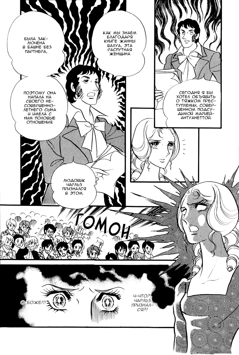 Хорошая рисовка, атмосфера и режиссура, отлично передали сеттинг и дух того времени, хотя большой акцент был сделан на дворцовых интригах. Жалко, тайтл действительно хороший, но знание и понимание тех событий мешало мне воспринимать его (было не так интересно).Сам я прочитал некоторые книги про эти события, начиная с казалось бы незатейливых, вроде "Анж Питу" и заканчивая перечитыванием исторических событий на разных источниках. Тайтл можно назвать историческим или документальным, т.к. в целом соблюдена хронология, причины, последствия. Конечно не обошлось без перекрашивания реальных персонажей или добавлением новых. События происходившие в те дни хорошо описаны в сюжете, но слегка поверхностно, событий было куда больше, а людей линчевали прямо на улице. А история всей королевской семьи, включая детей имеет крайне печальную и жестокую концовку, нам показали лишь легкую смерть королевы Марии-Антуанетты
