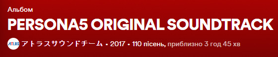 Музыка, моё почтение. В самой серии игр Persona музыка великолепна и эта часть не исключение. А спасибо нам за это надо говорить великому композитору - Сёдзи Мэгуро. Знайте героя в лицо. В альбоме 110 песен, найти можно буквально все, что захотите. Музыка Persona 5 включает в себя такие жанры, как джаз, фанк, диско, соул, хип-хоп и поп-музыка. Там очень много песен, которые действительно хочется слушать, но есть и те, что достаточно короткие и написаны для отдельных коротких игровых моментов. Саундтрек достаточно легкий, чтобы включить его фоном. Я неиронично при поездке в зал включаю музыку из персоны и могу выпасть из жизни на минут 20. Песни также круто работают в отрыве от игры.