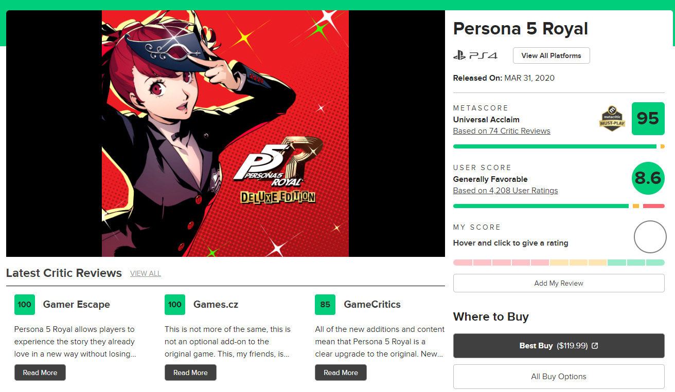 Когда на Metacritic у нас великолепные оценки у игры, а на том же myanimelist у нас уровень четвертого сезона "Токийского гуля".