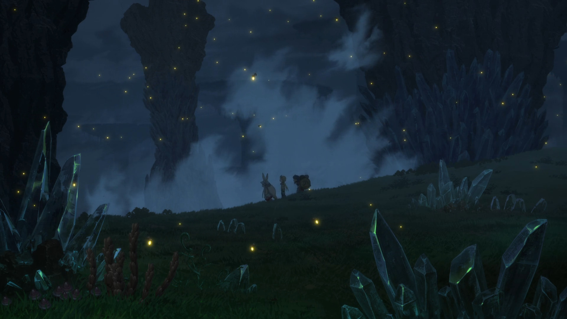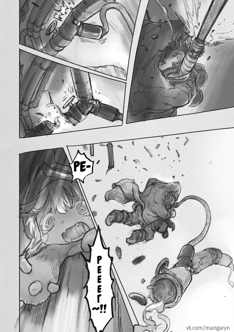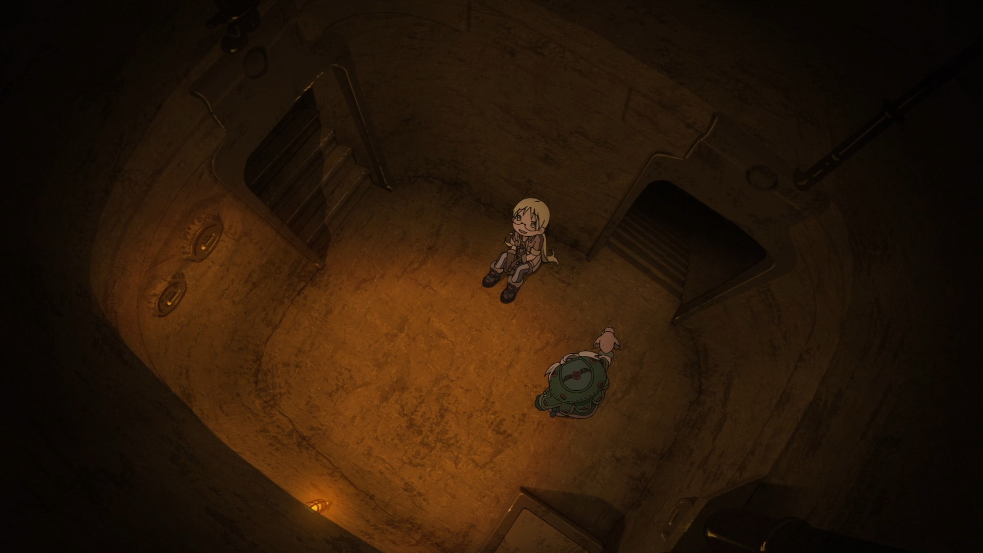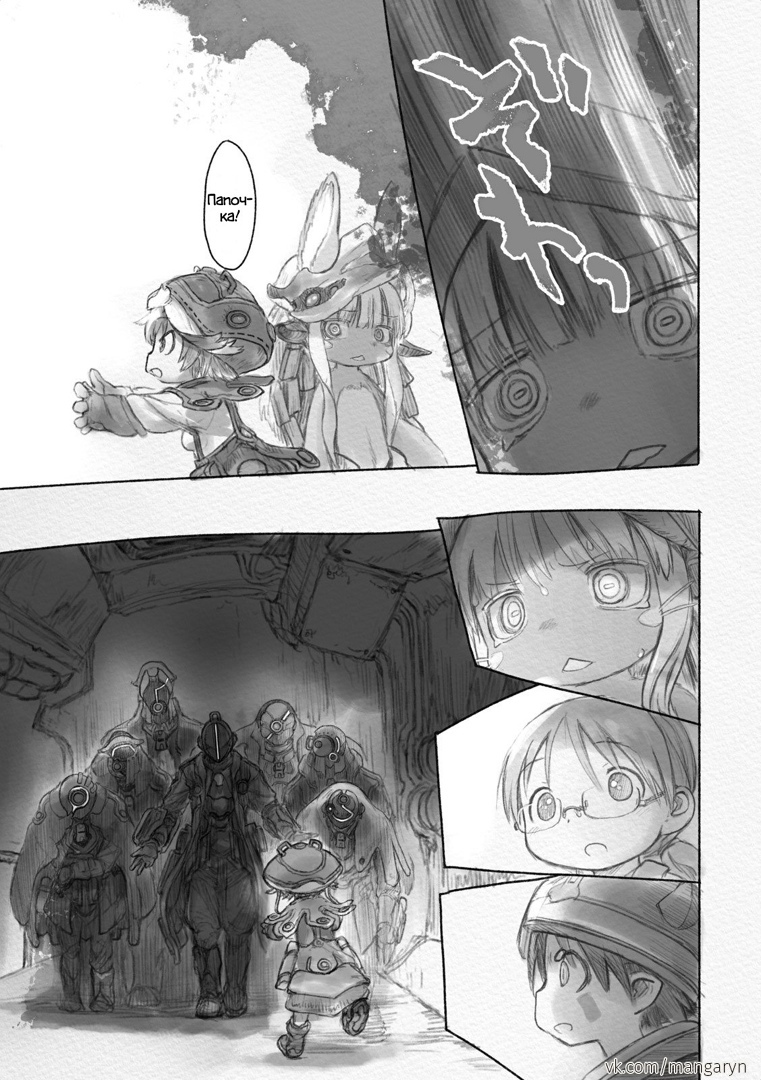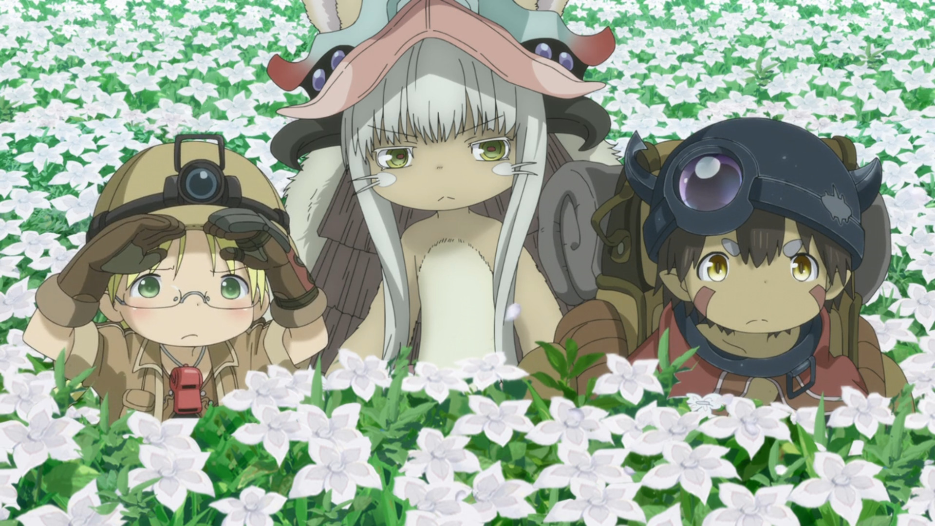 Разберем этот тезис на примере вступительной сцены с жуками-имитаторами. Группа стала ответствеyнее относиться к выбору позиции – если раньше детишки не могли нормально распределиться в пространстве, в результате чего хрупкая Рико оказывалась лицом к лицу с опасным зверем, в то время как мощный Рэг медлит где-то позади, то теперь все на своих местах и не мешаются друг другу. Достигнуто это было путем введения нового члена команды в лице сообразительной и сдержанной Наначи, которая привносит порядок в группу, усмиряя пытливый энтузиазм Рико и командуя нерешительным Рэгом.