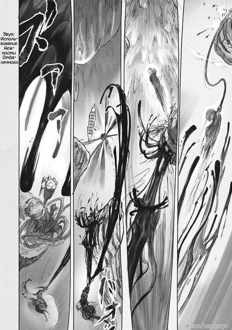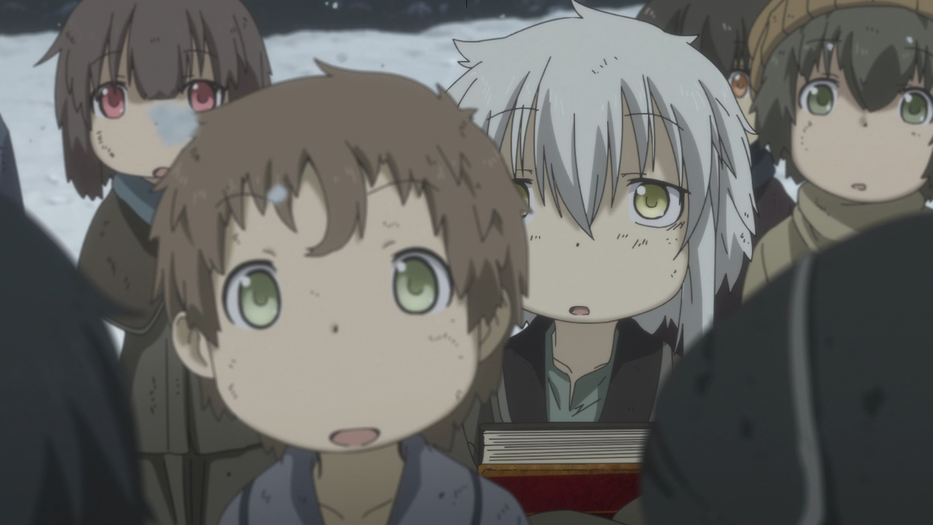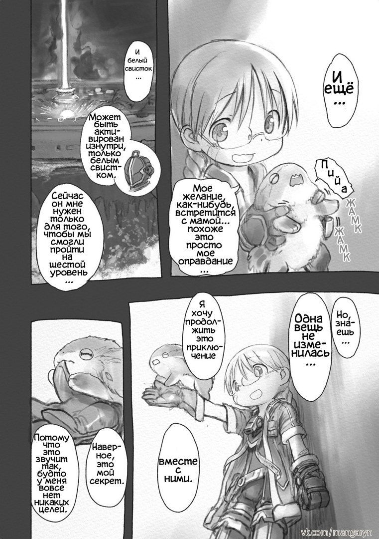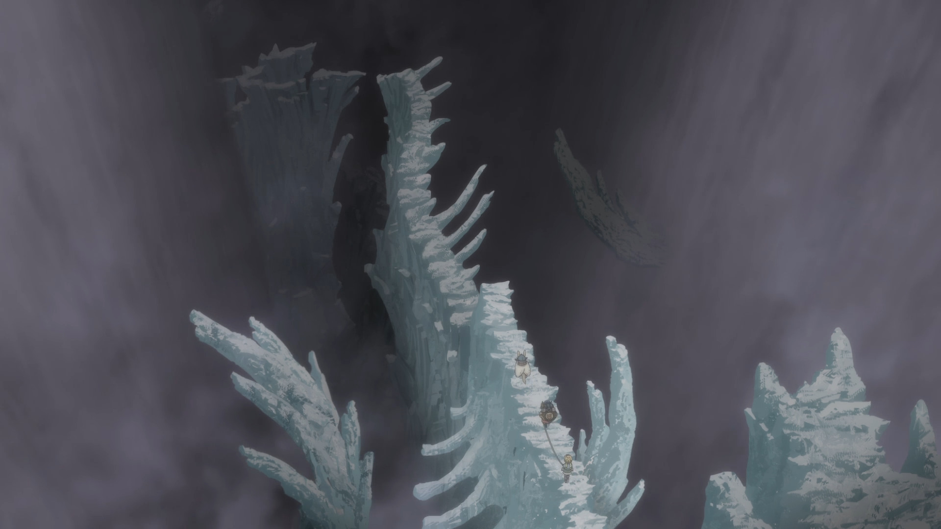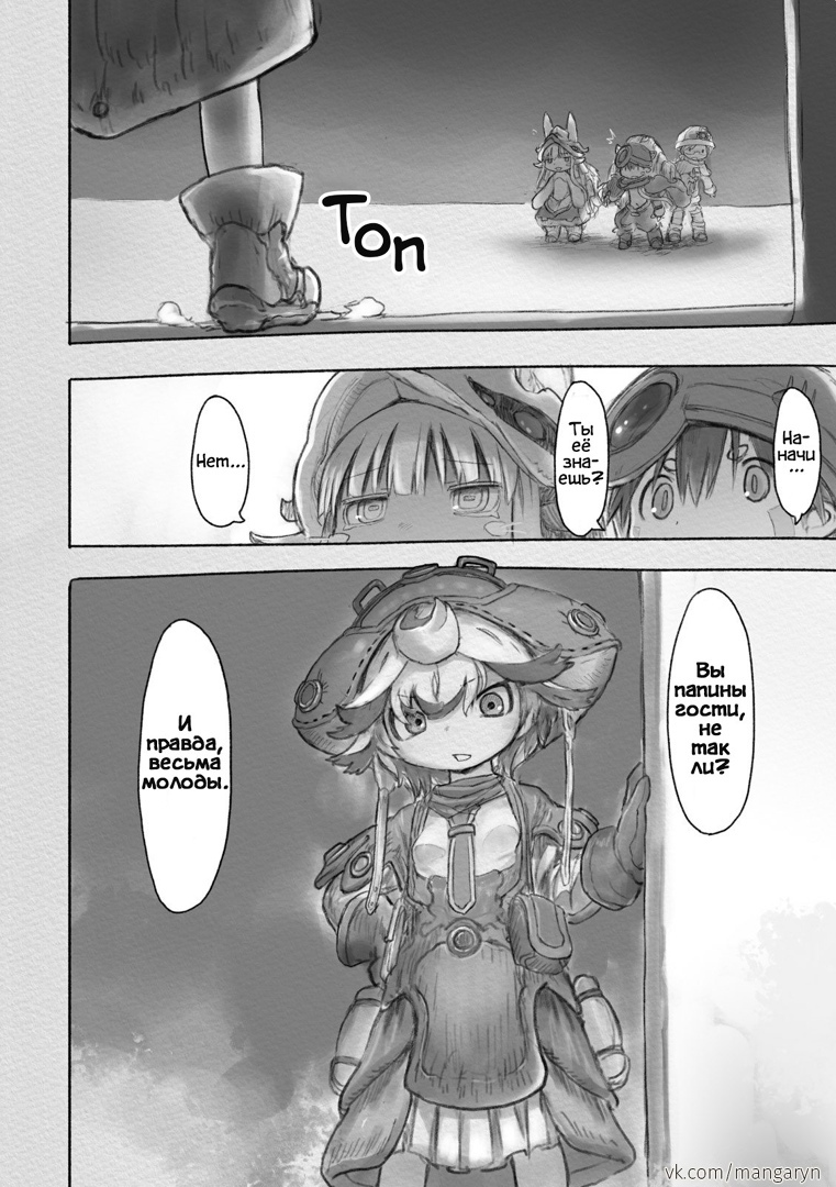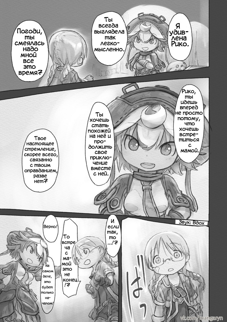 Разберем этот тезис на примере вступительной сцены с жуками-имитаторами. Группа стала ответствеyнее относиться к выбору позиции – если раньше детишки не могли нормально распределиться в пространстве, в результате чего хрупкая Рико оказывалась лицом к лицу с опасным зверем, в то время как мощный Рэг медлит где-то позади, то теперь все на своих местах и не мешаются друг другу. Достигнуто это было путем введения нового члена команды в лице сообразительной и сдержанной Наначи, которая привносит порядок в группу, усмиряя пытливый энтузиазм Рико и командуя нерешительным Рэгом.