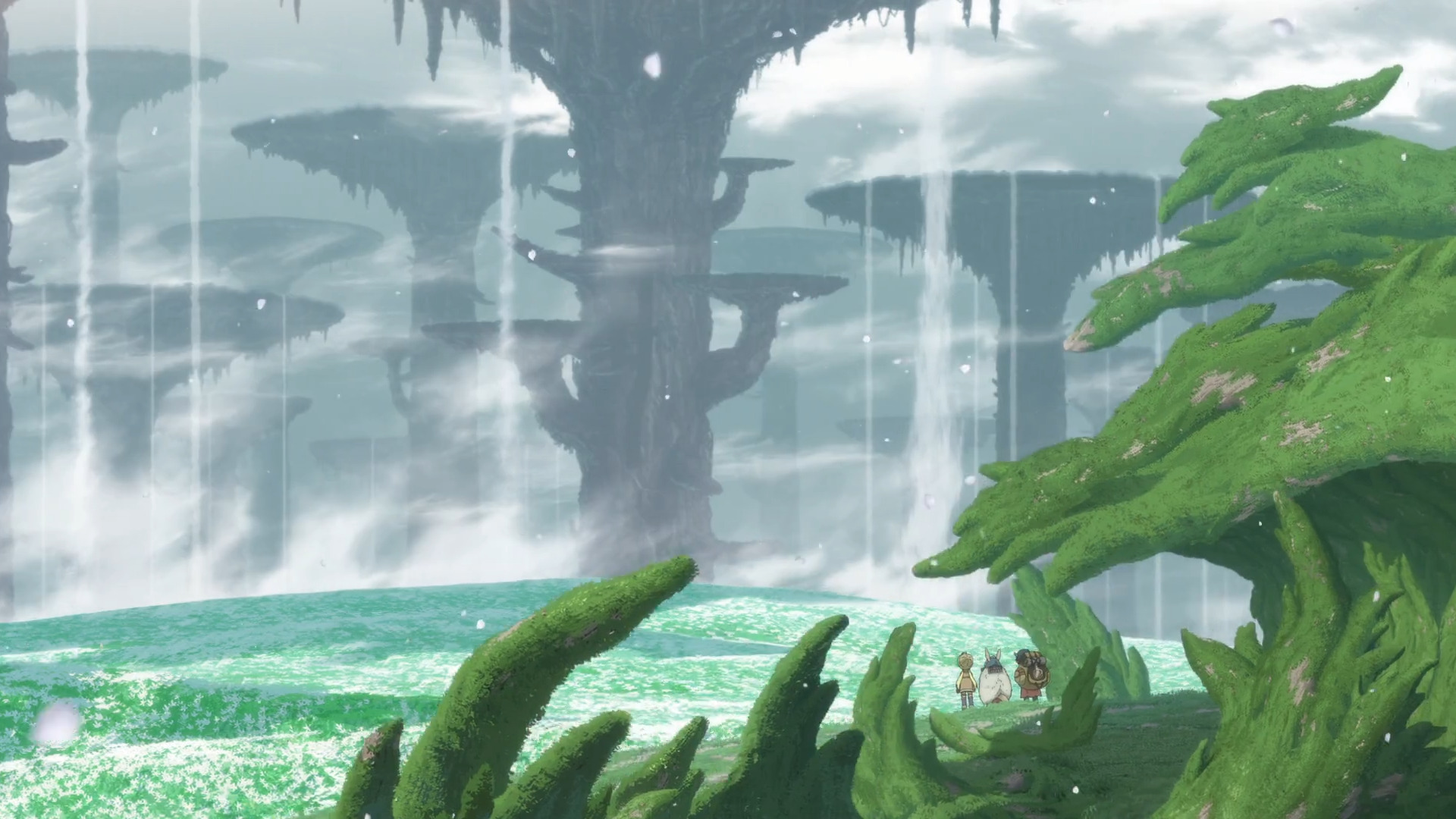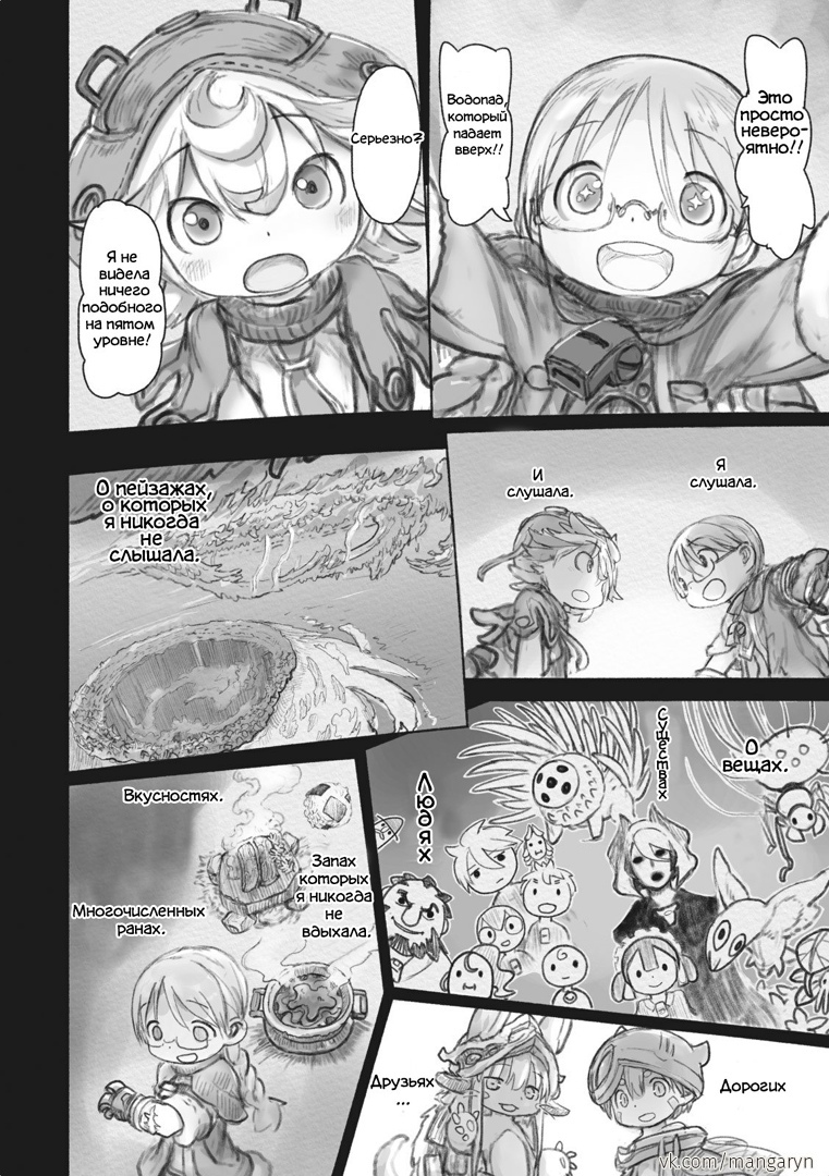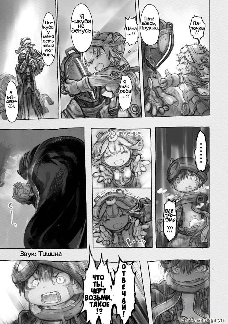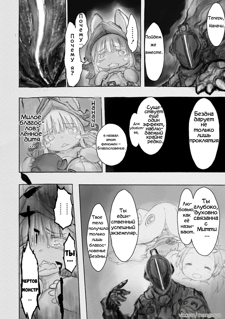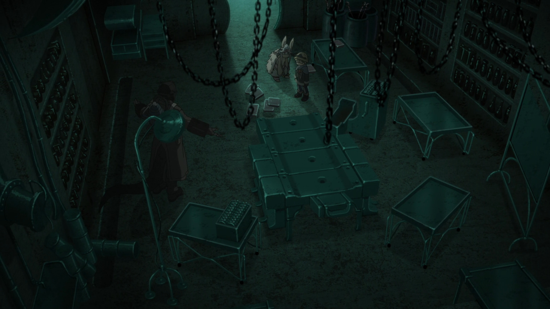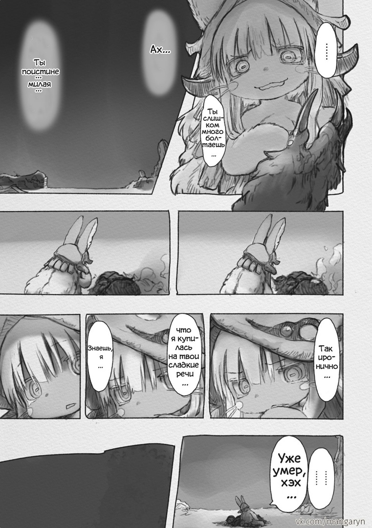 Разберем этот тезис на примере вступительной сцены с жуками-имитаторами. Группа стала ответствеyнее относиться к выбору позиции – если раньше детишки не могли нормально распределиться в пространстве, в результате чего хрупкая Рико оказывалась лицом к лицу с опасным зверем, в то время как мощный Рэг медлит где-то позади, то теперь все на своих местах и не мешаются друг другу. Достигнуто это было путем введения нового члена команды в лице сообразительной и сдержанной Наначи, которая привносит порядок в группу, усмиряя пытливый энтузиазм Рико и командуя нерешительным Рэгом.
