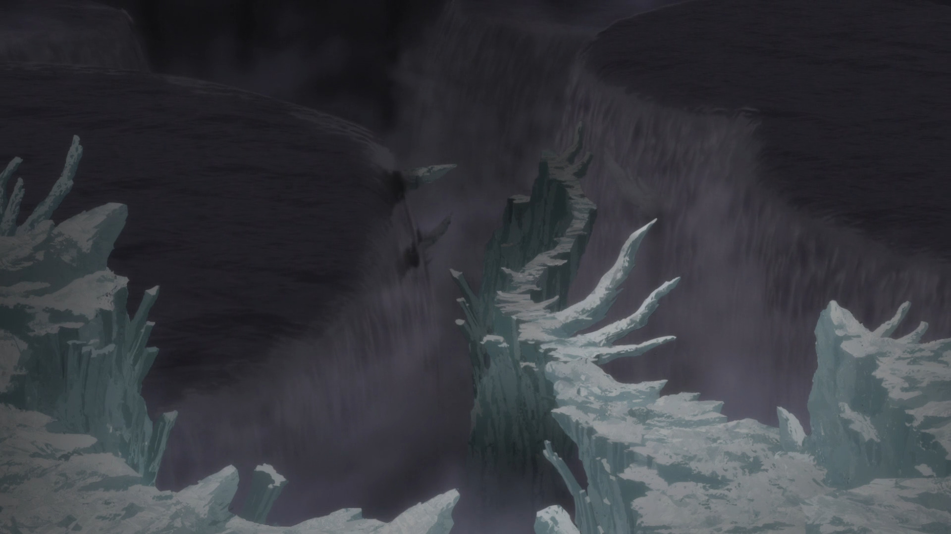 Но, конечно, это всё это ни в какое сравнение не идёт с пейзажами пятого слоя. Вековые ледяные хребты, будто промёрзшие позвоночники огромных вымерших зверей, держат тонны ледяной жидкости способные обрушить огромные массивы тёмной понурой воды. Чего стоит одна цветовая гамма: белые, слегка голубоватые основания теснятся среди серовато-пурпурных массивов зловещего моря останков.