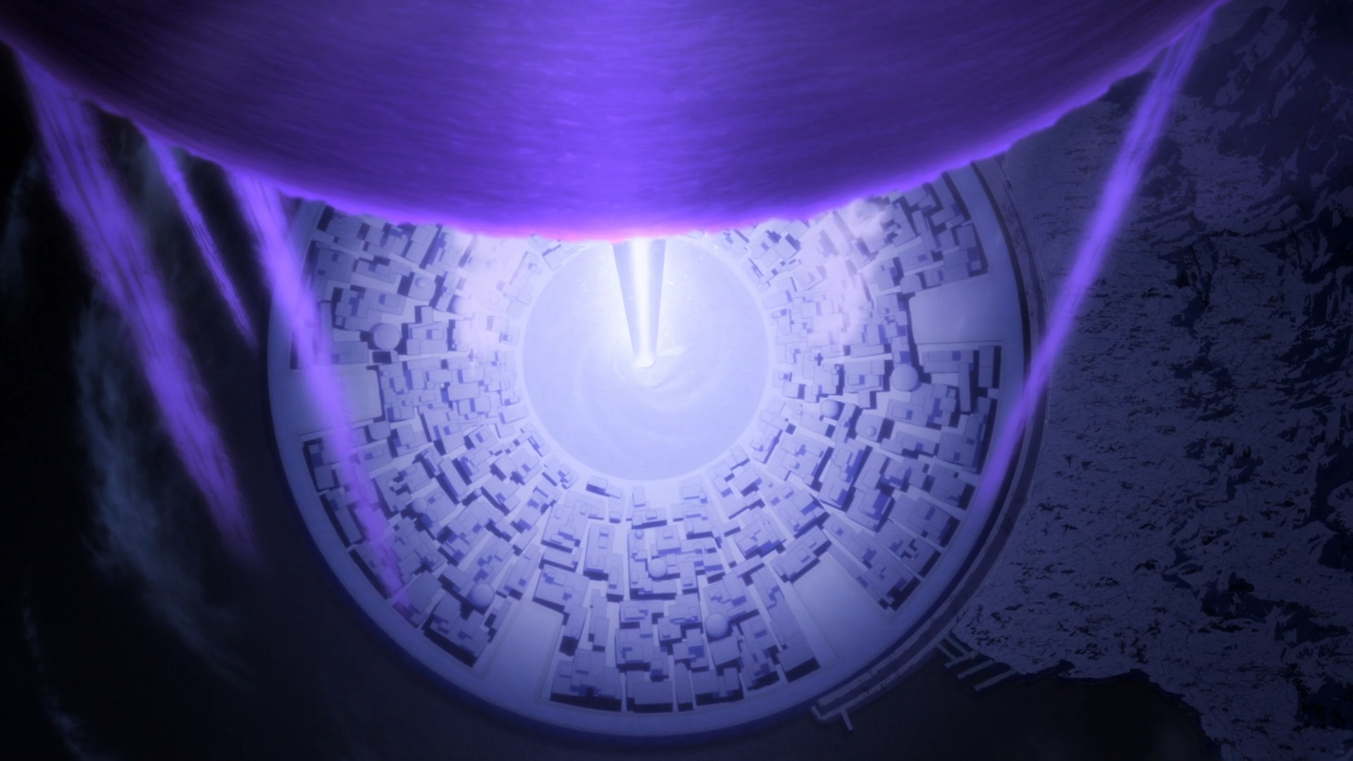 Экстерьер Идофронта, научной базы, что освещает пятый слой своим ярким фиолетовым светом.