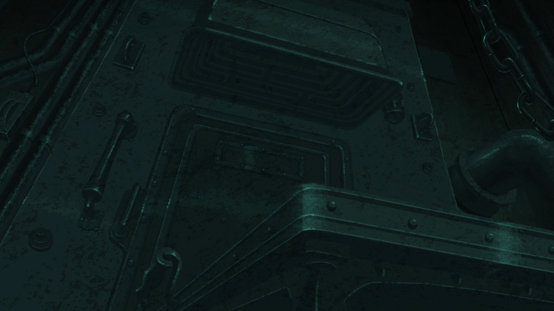 Внутреннее устройство базы: пустые жёлтые коридоры пронизаны всяческими трубами и закупорены тяжелыми металлическими дверями.