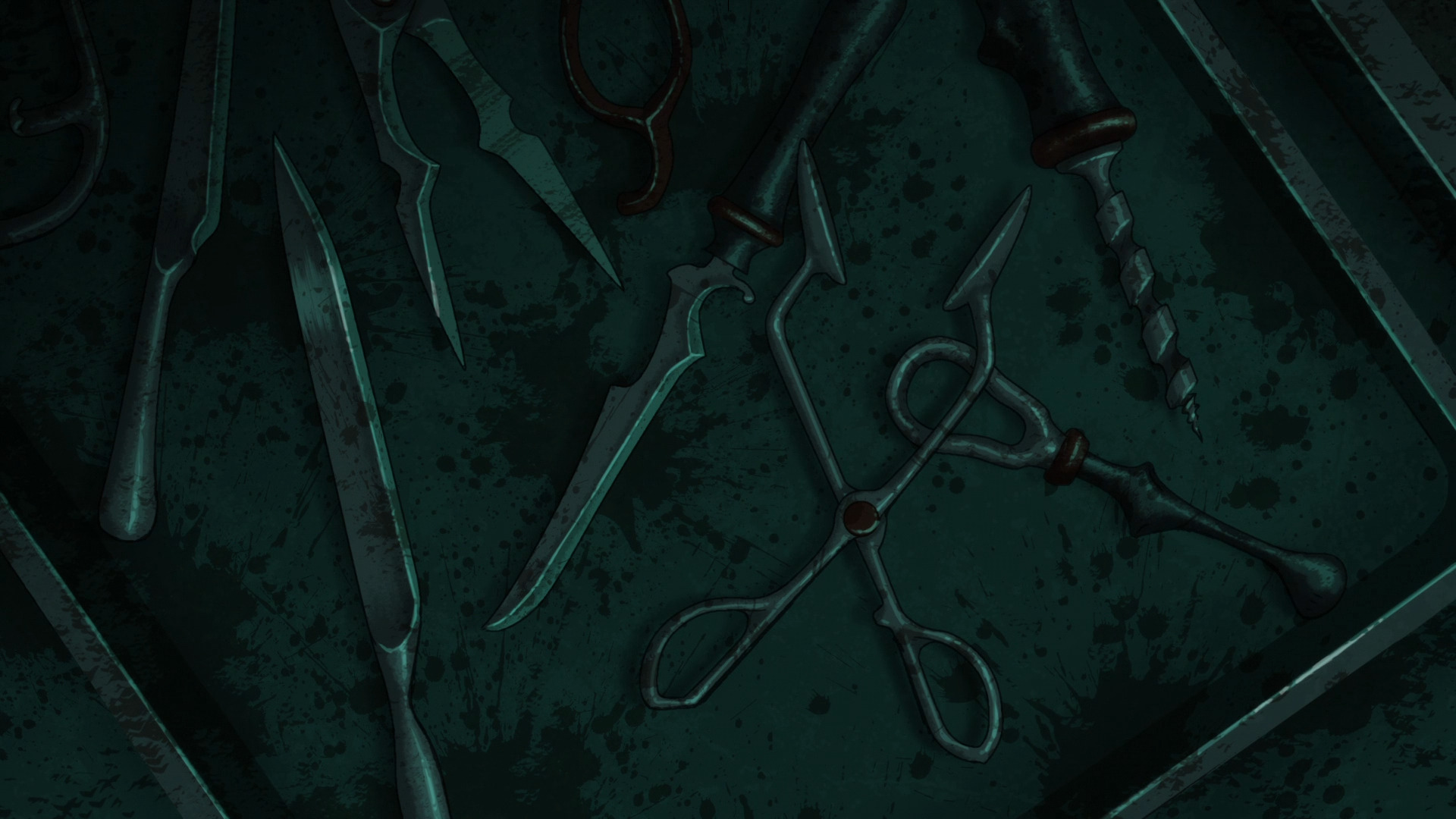 Более крупные планы. Металлические инструменты и приспособления, что леденят душу. Ни о какой санитарии речи и не идёт.