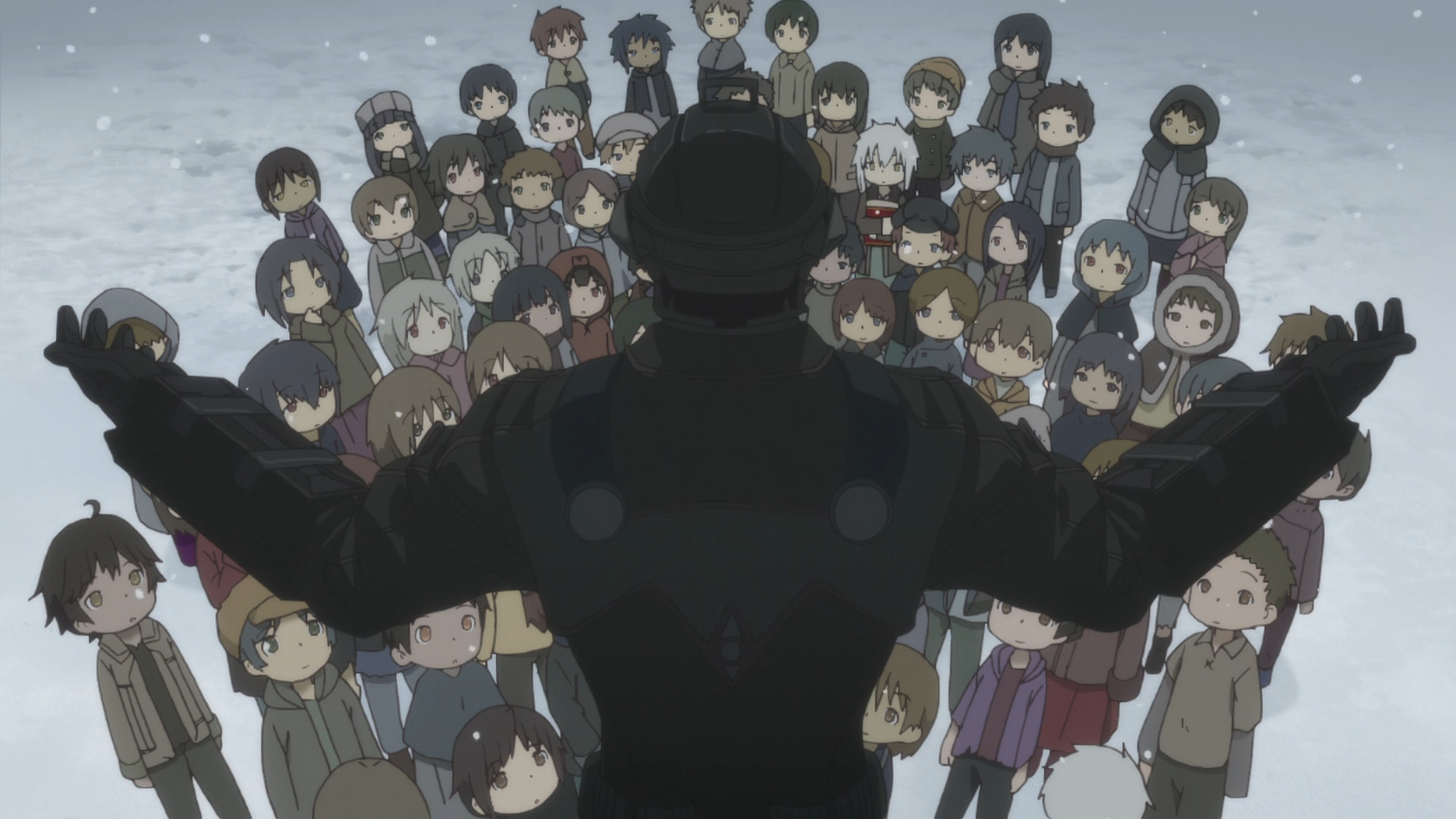 Но даже если зритель осилил предыдущий эпизод, то в случае с следующей сценой шансов не зарыдать – нет. “Tozo Hanoline ft. Uyanga Bold” знаменует конец затянувшейся битвы и в некоторой мере переосмысляет мотивы антагониста, показывая его с другой стороны. Даже при сборе материалов для этой работы, наталкиваясь на эту сцену раз за разом, я не мог сдержать слёз, когда Бондрюд “отпускал” свою дочь в путешествие с друзьями. То, как эта сцена сделана даже нивелирует ту сюжетную недоработку, которую создал Цукуси, пытаясь обелить антагониста.